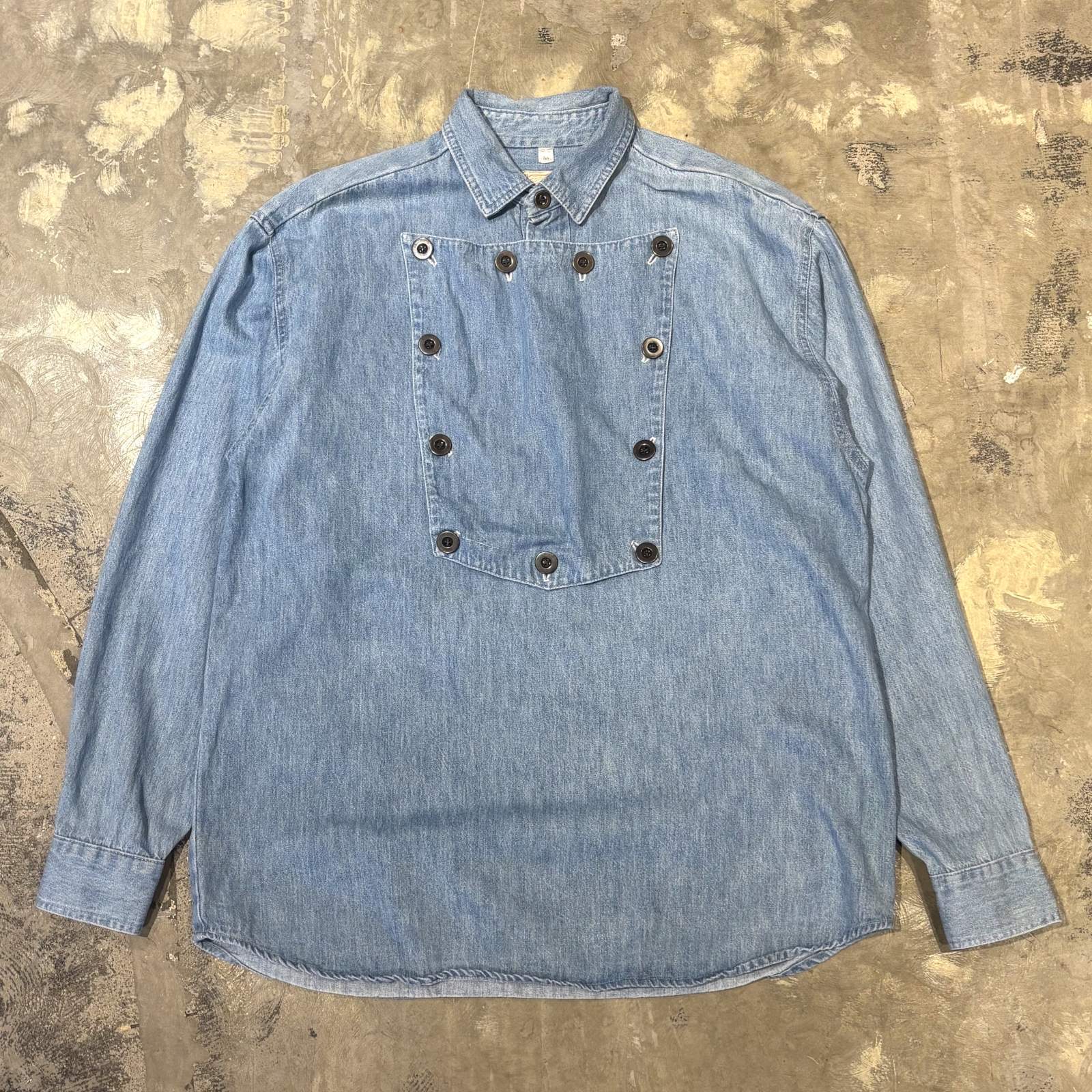- > FRONT DETACHABLE BUTTON FLAP DENIM L/S SHIRT / Mens M(L)