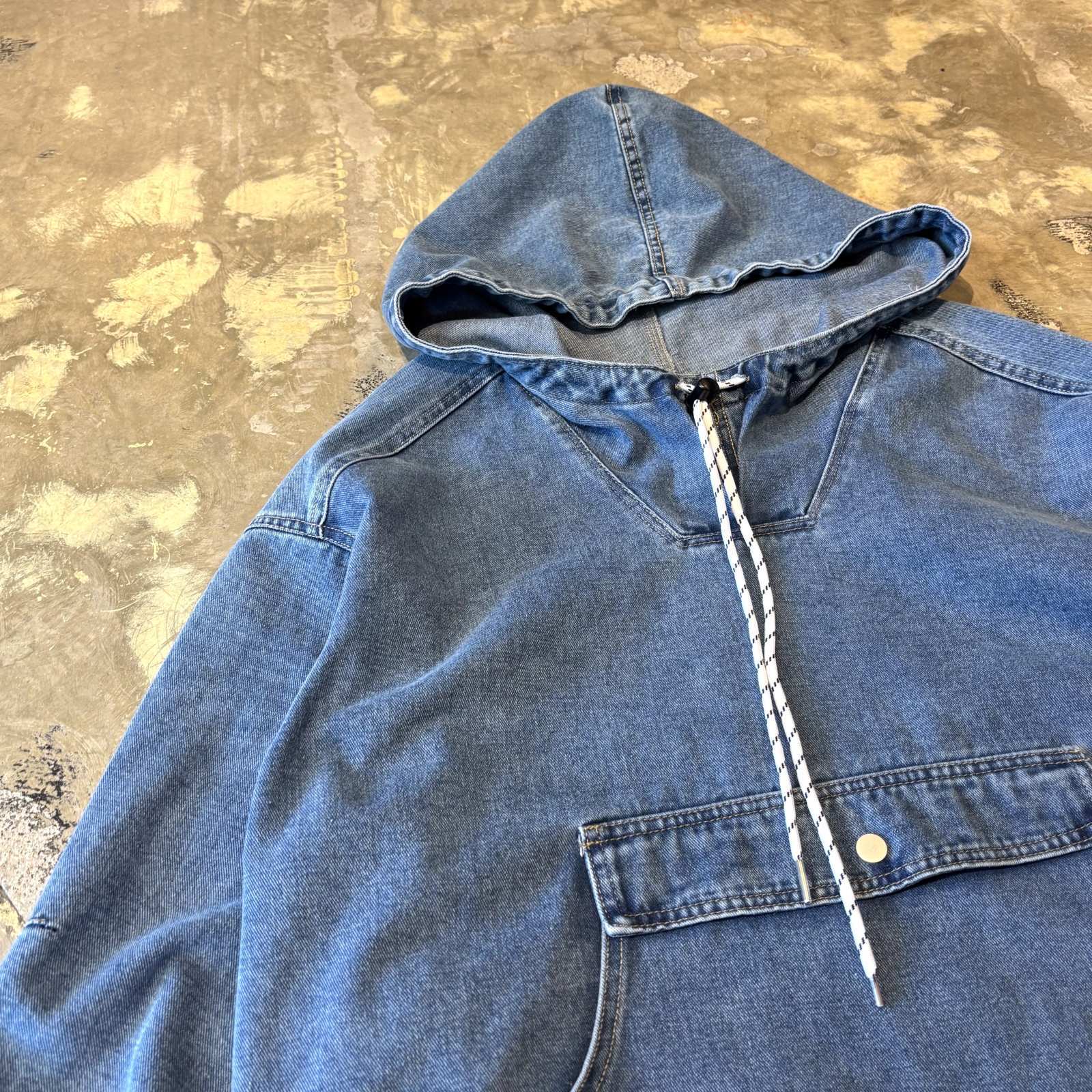 - > PULLOVER STYLE HOODIE DENIM JACKET / Mens L