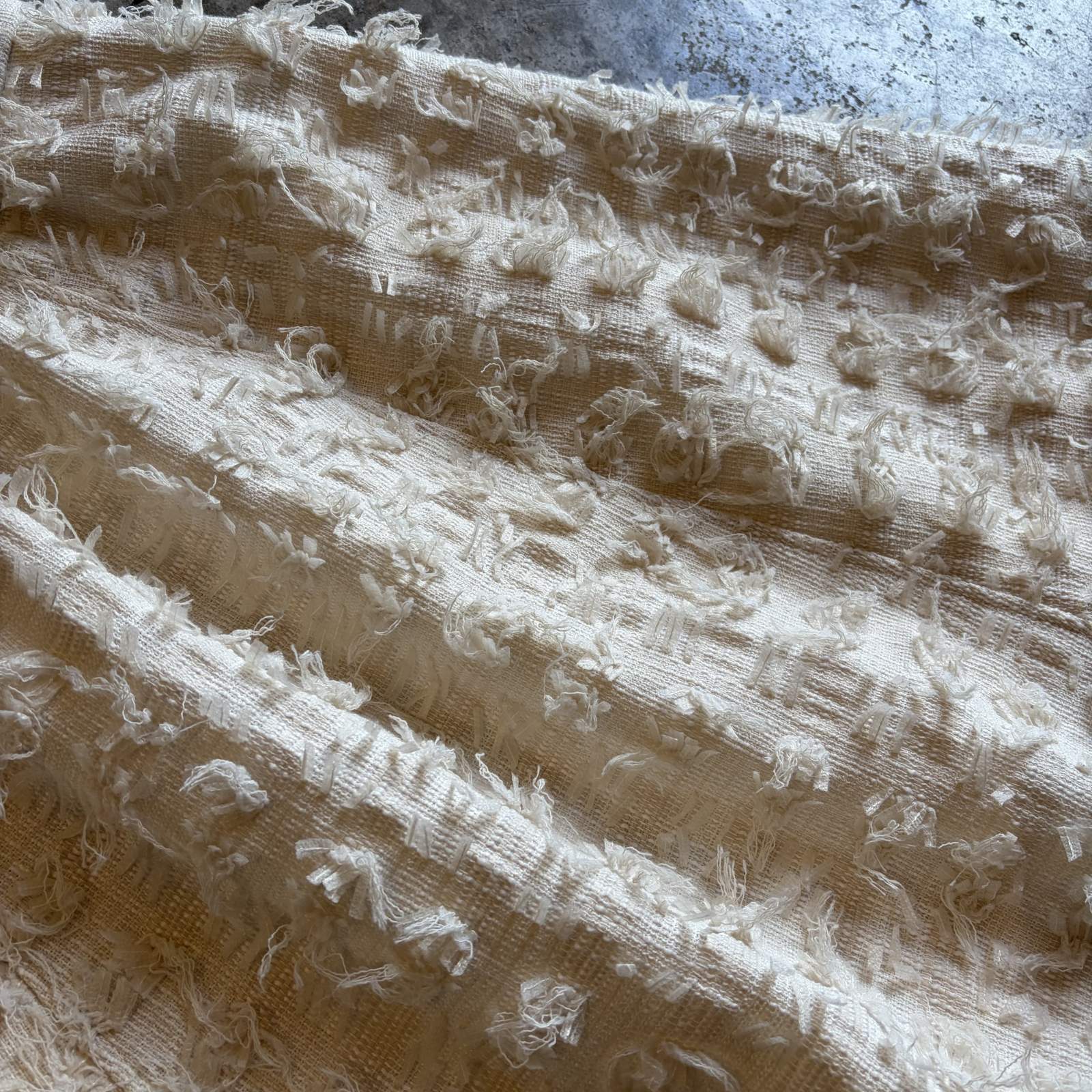 フリンジの動きのある素材が華やかさもプラス。