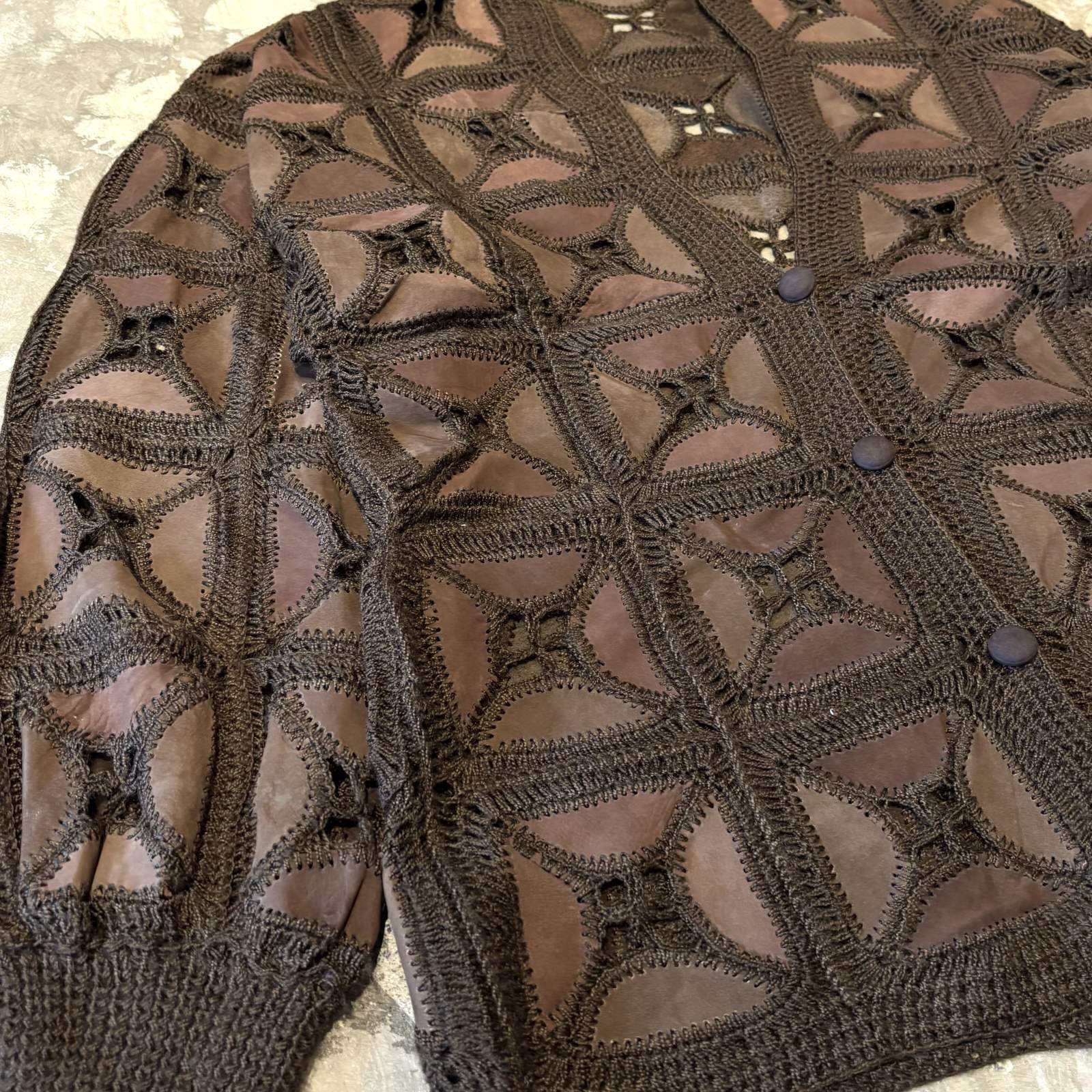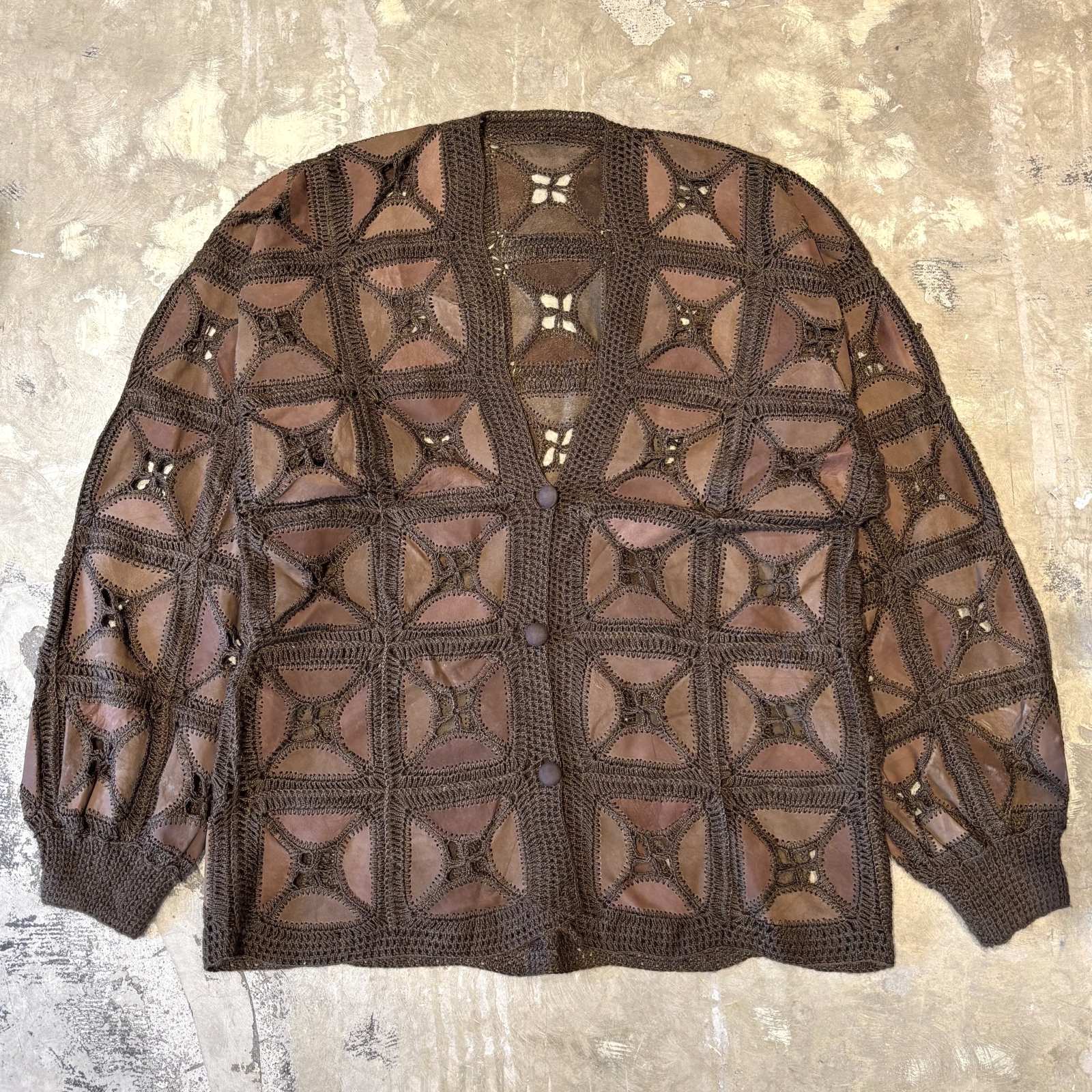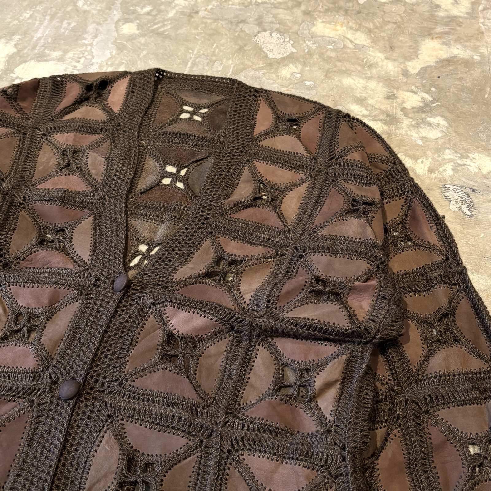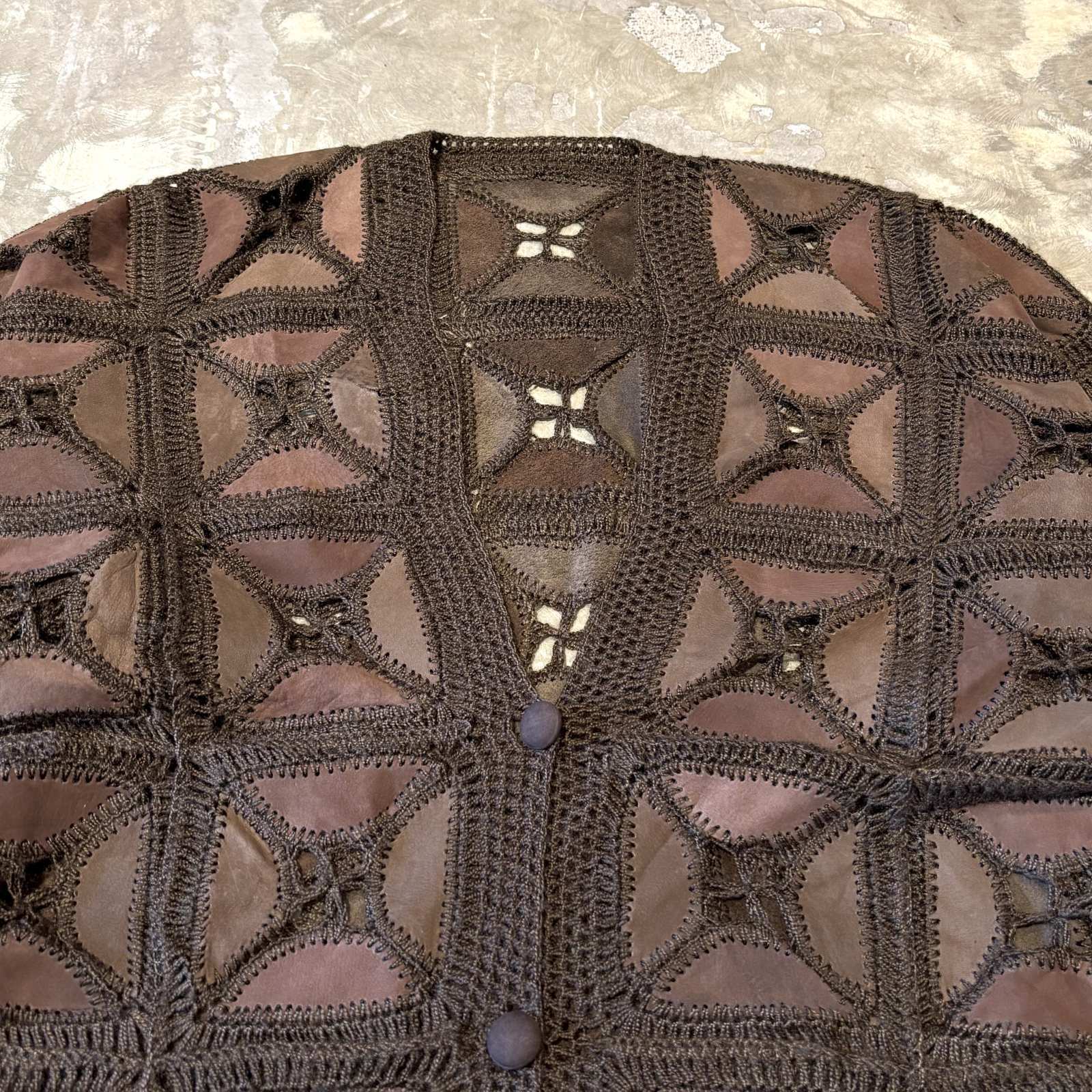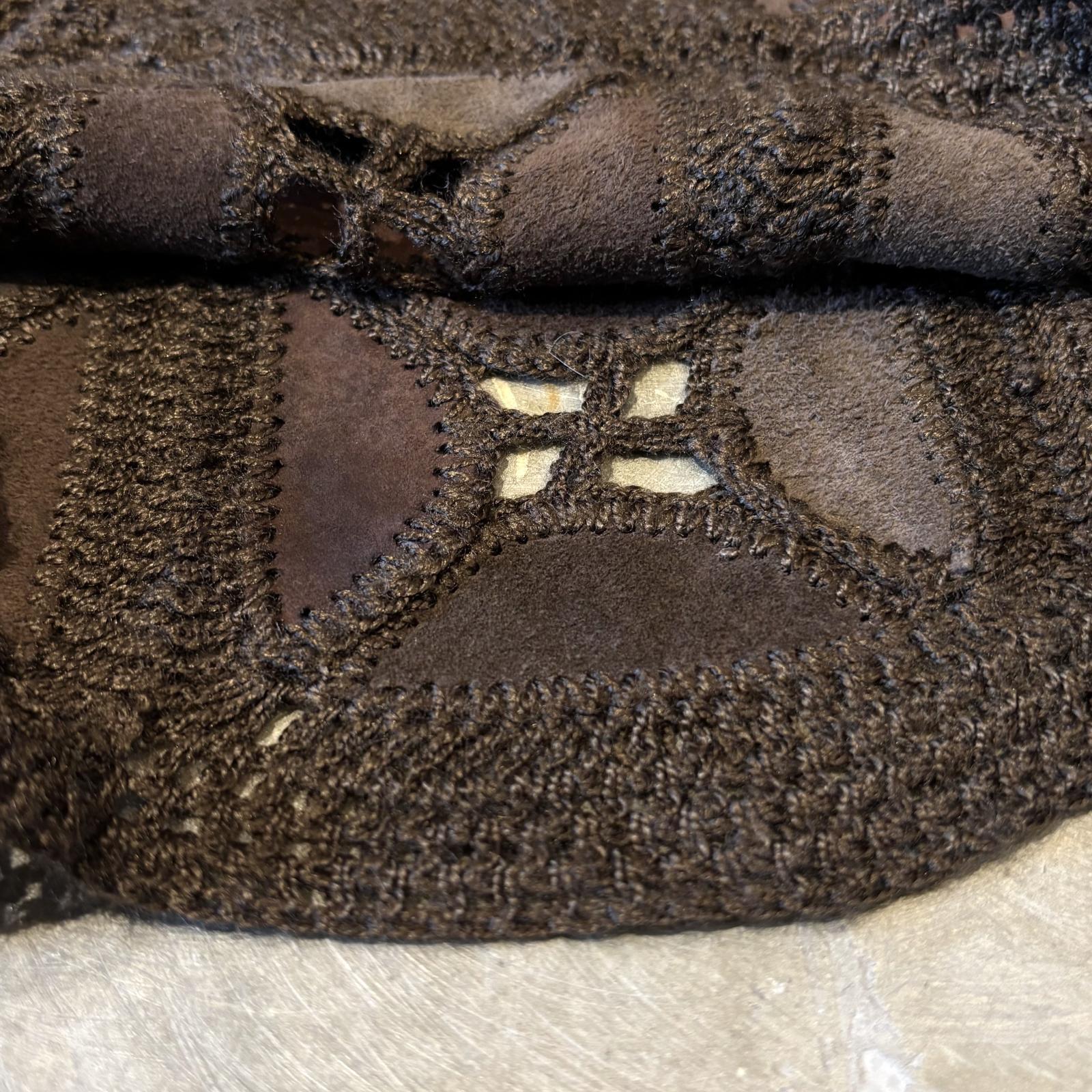 - > SUEDE LEATHER PATCHWORK & LACE UP CARDIGAN / Mens XL