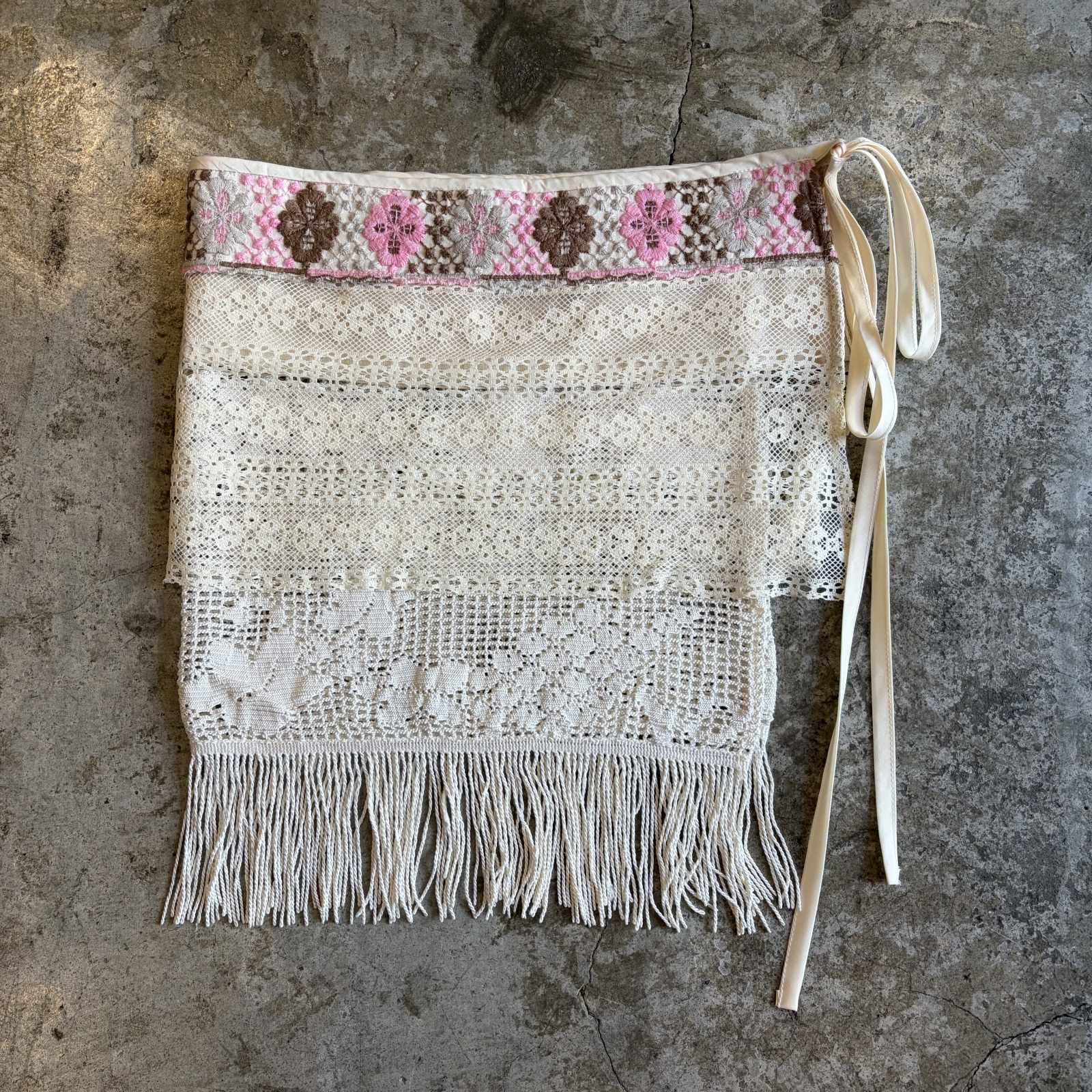 デザイナーのインスピレーションにより解体・再構築された"WANDERER" VINTAGE LACE MIX WRAP SKIRT。