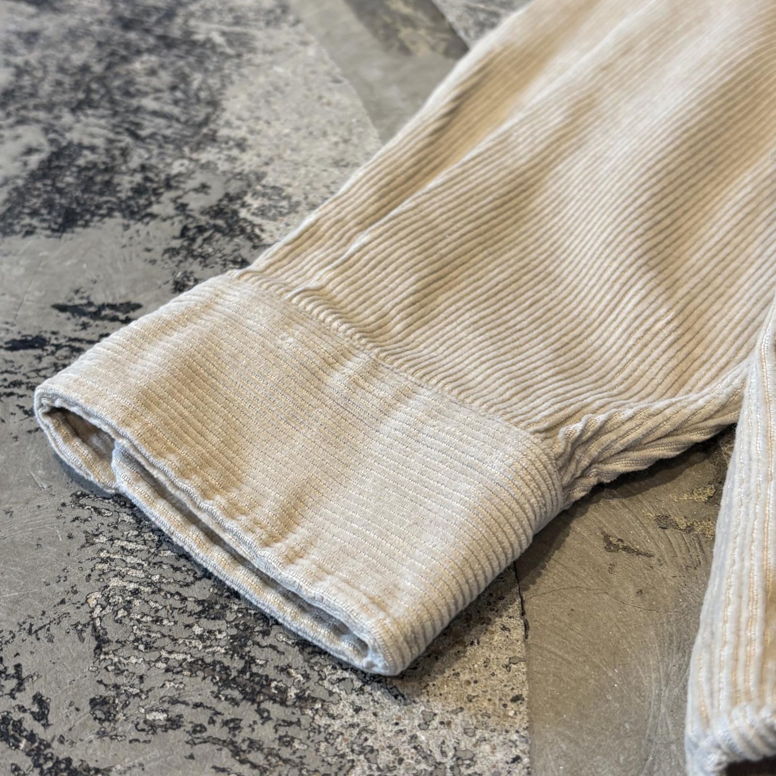 コーデュロイ生地がカジュアルな雰囲気を醸し出しつつ、シャツスタイルが大人な佇まいを演出。