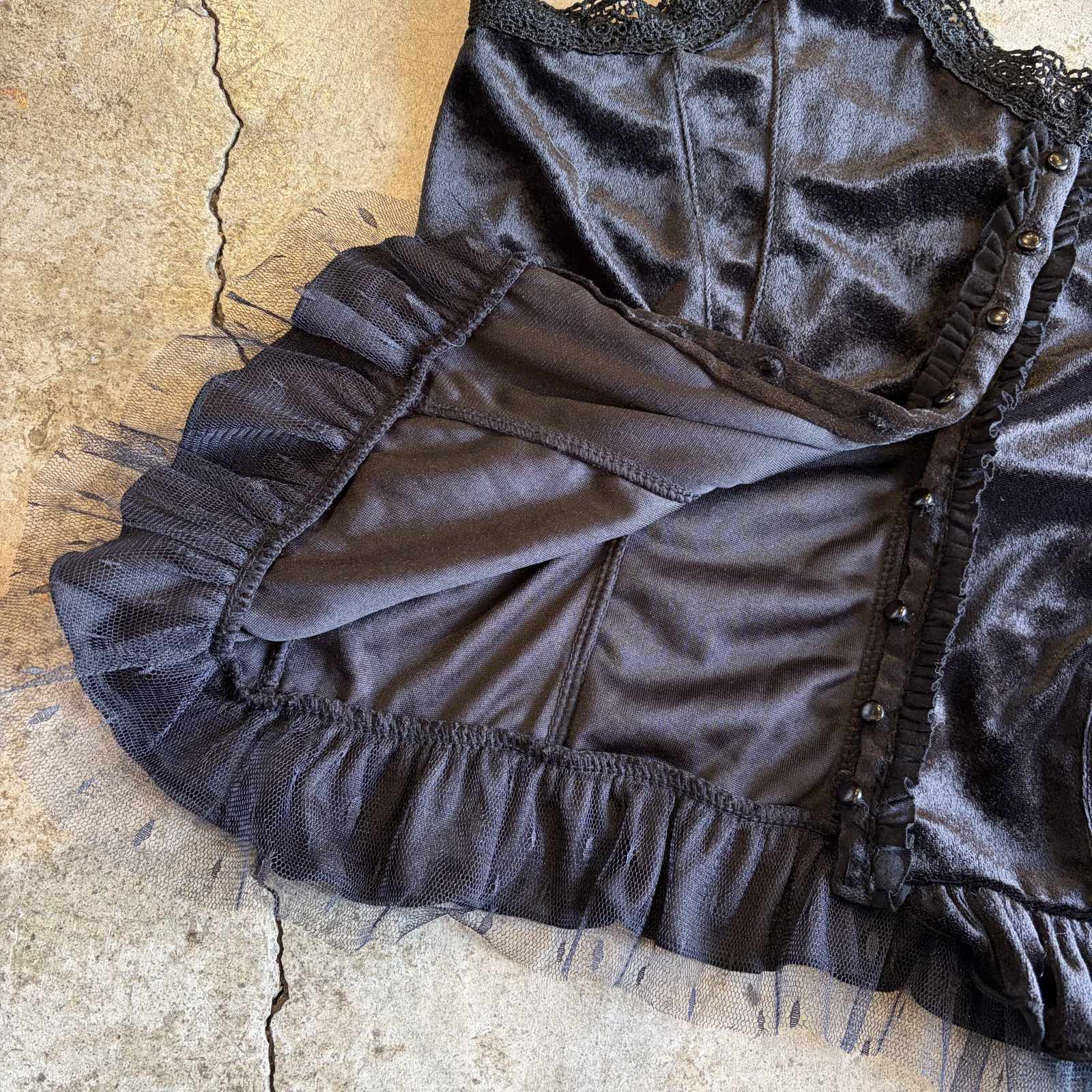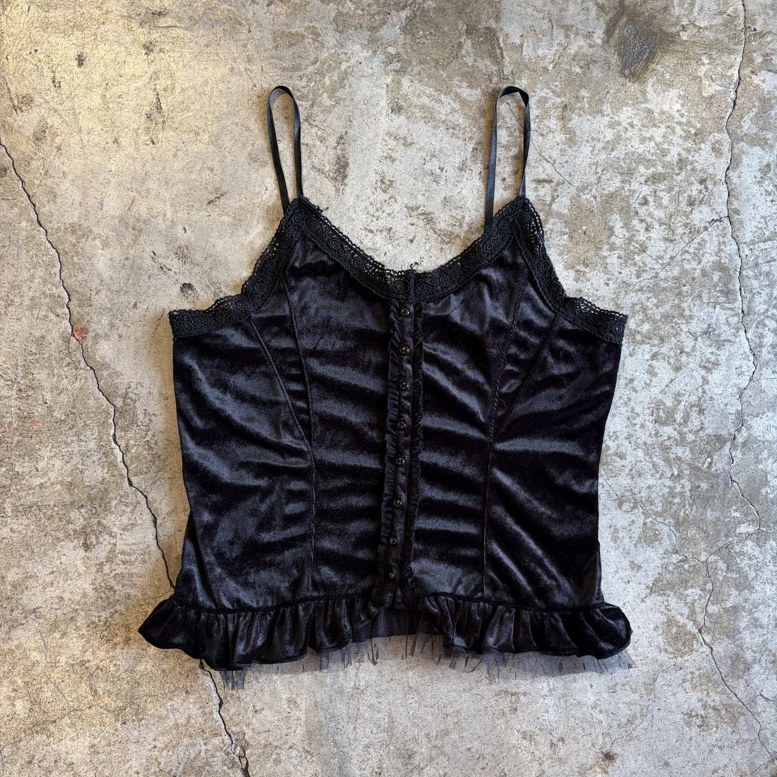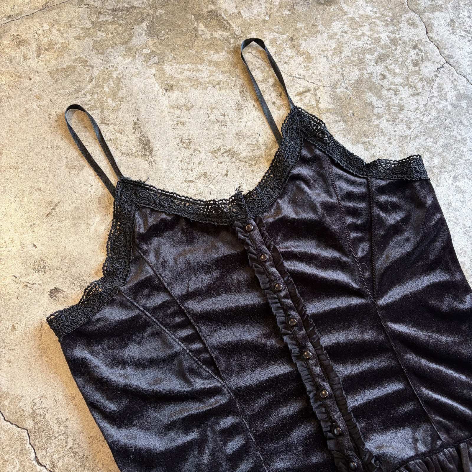 VELVET FRONT BUTTON BLACK COLOR LINGERIE DESIGN CAMISOLE / Ladies M