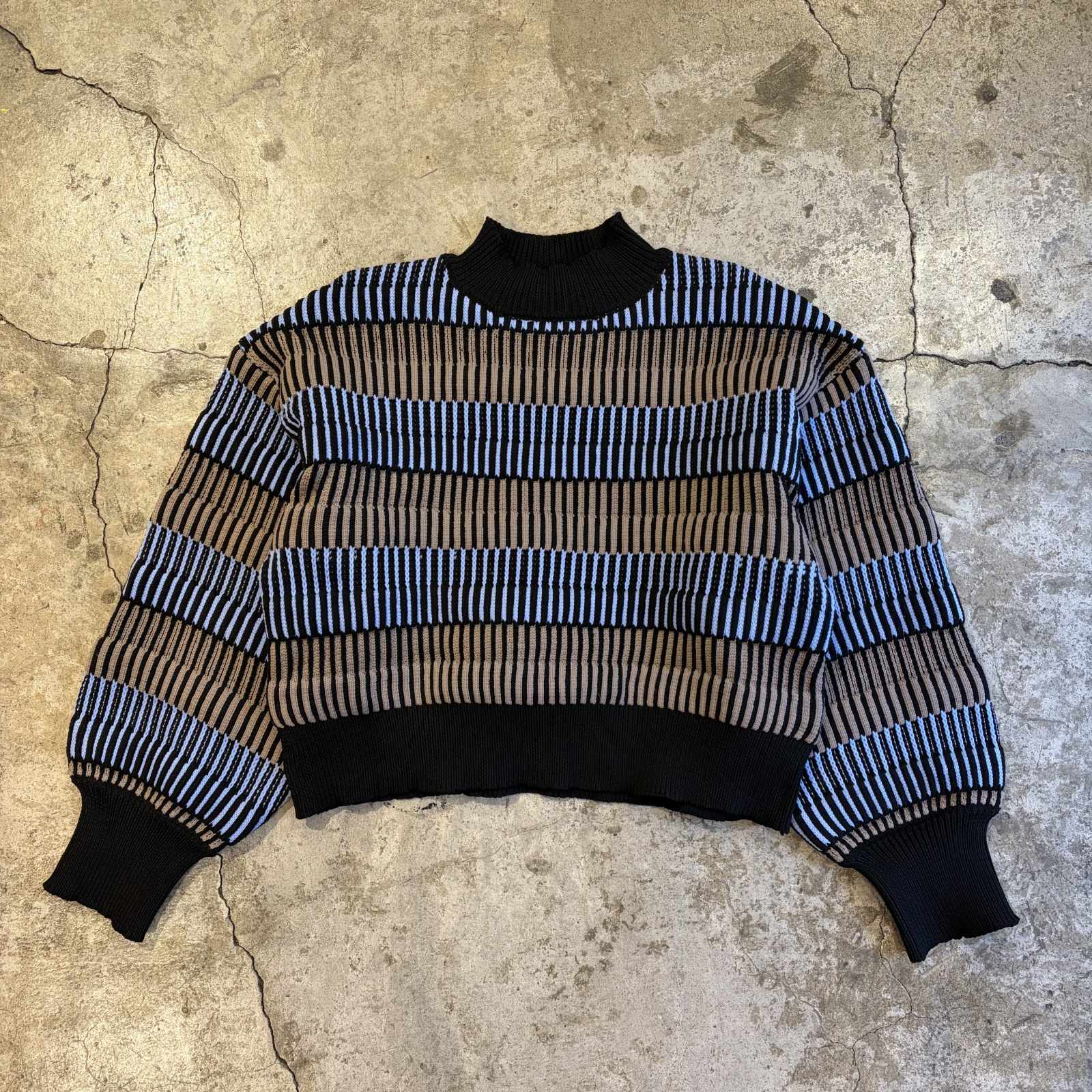 DESIGN BORDER COLOR LIGHT KNIT L/S TOPS / Ladies M~L