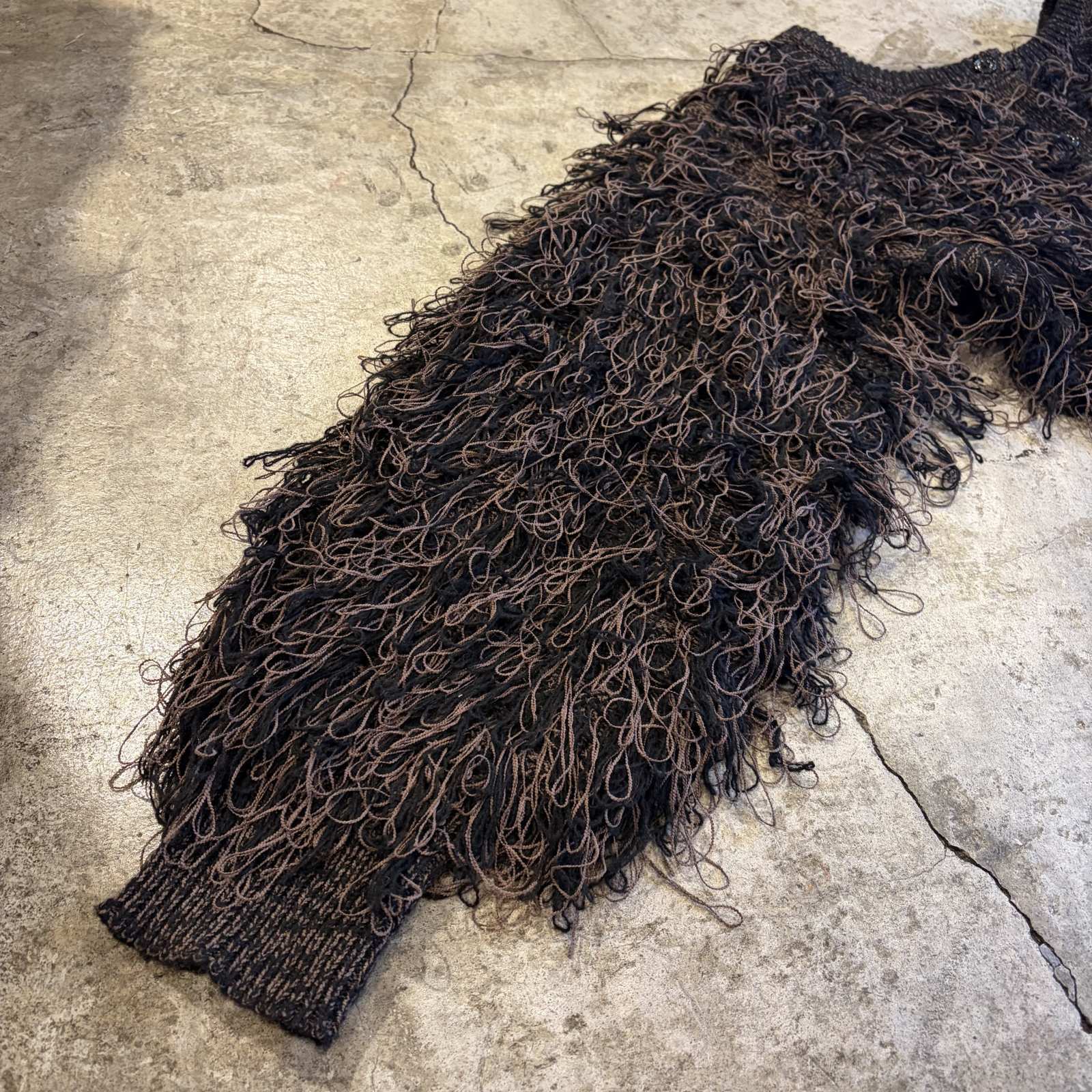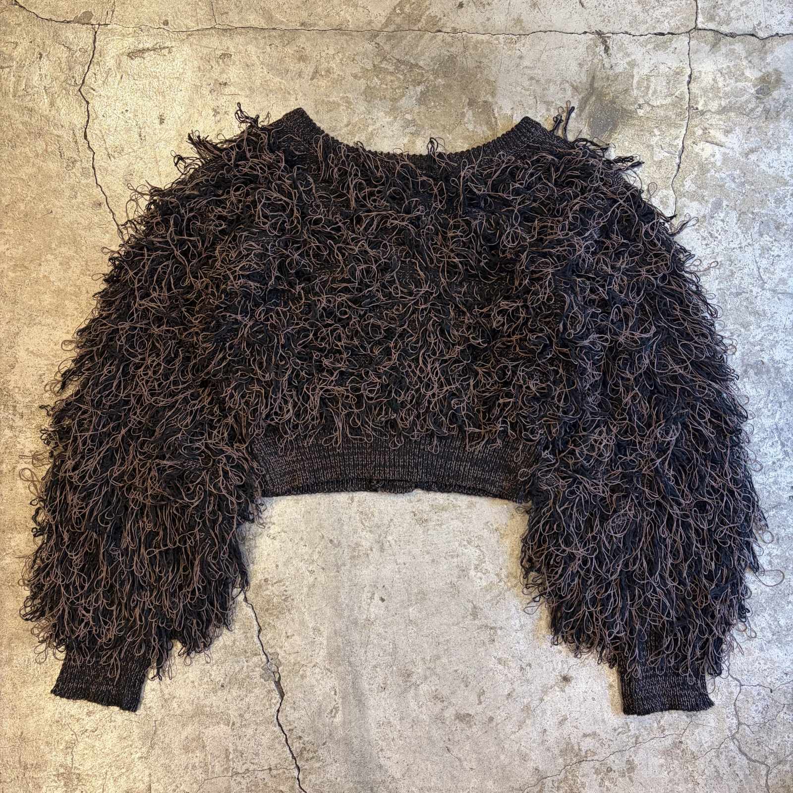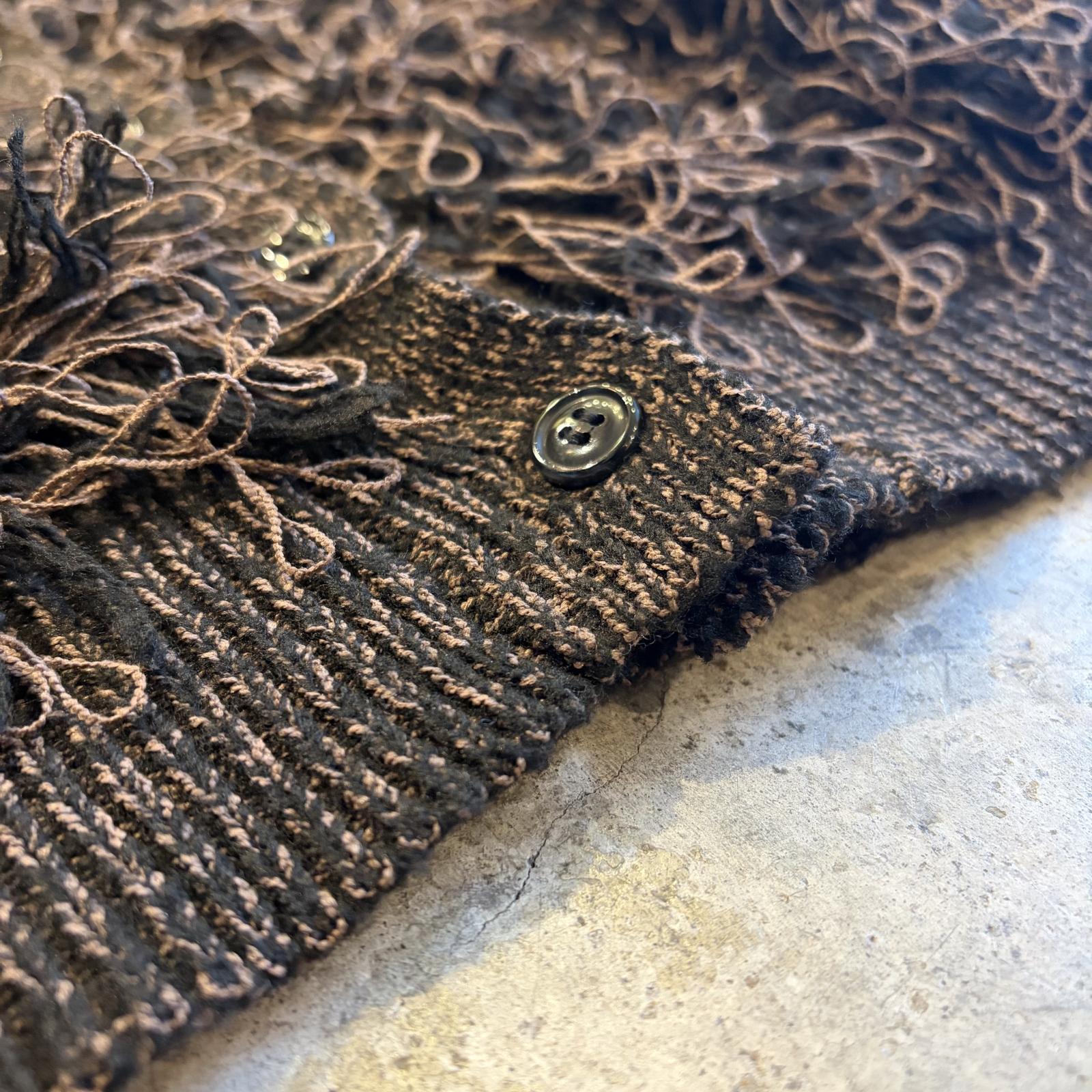 2TONE COLOR LOOP FRINGE DESIGN KNIT SHORT CARDIGAN / Ladies M