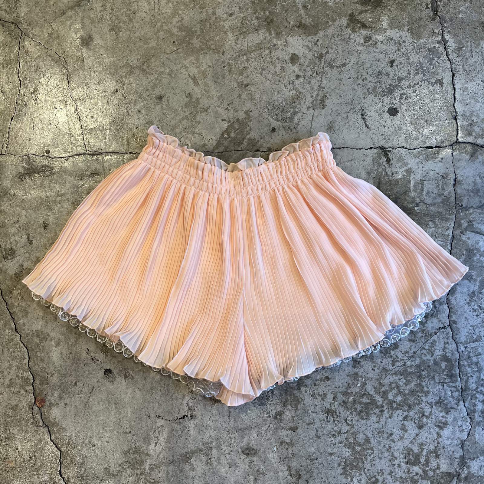 PALE PINK COLOR PLEATS PATTERN REVERSIBLE SHORT PANTS / W23~W29