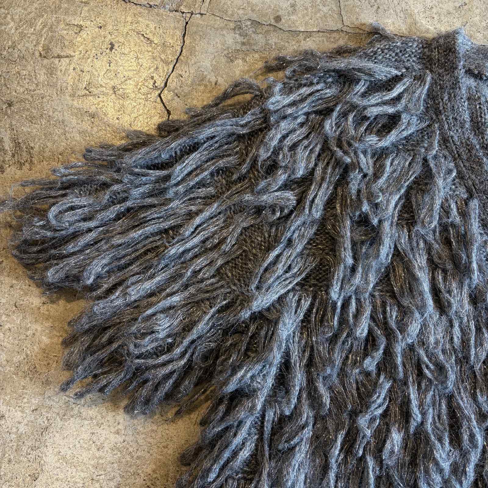 POINT GITTER LOOP FRINGE DESIGN KNIT S/S CARDIGAN / Ladies L