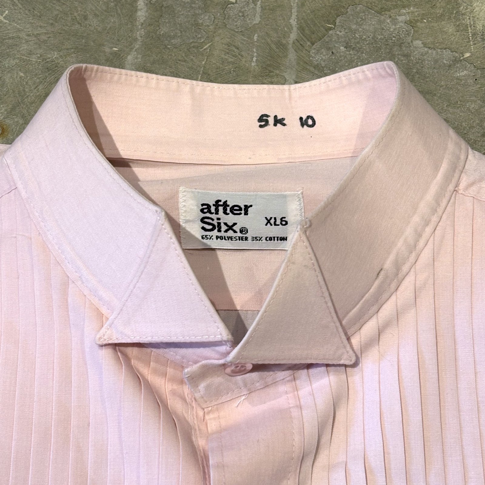 FRONT PLEATED PINK COLOR DRESS L/S SHIRT / Mens XL