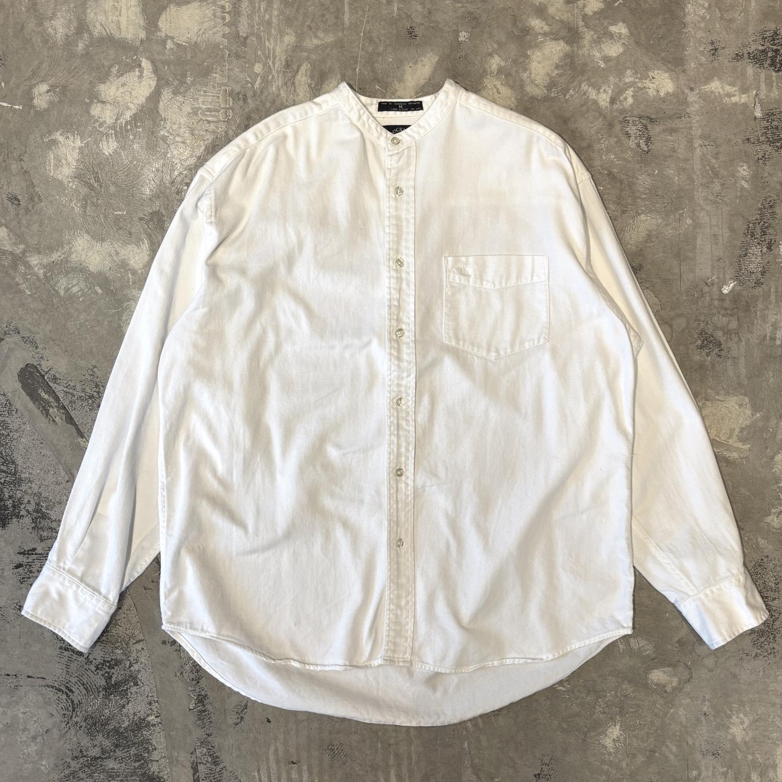 - > BAND COLLAR POINT EMBROIDERY COTTON L/S SHIRT / Mens M(L)
