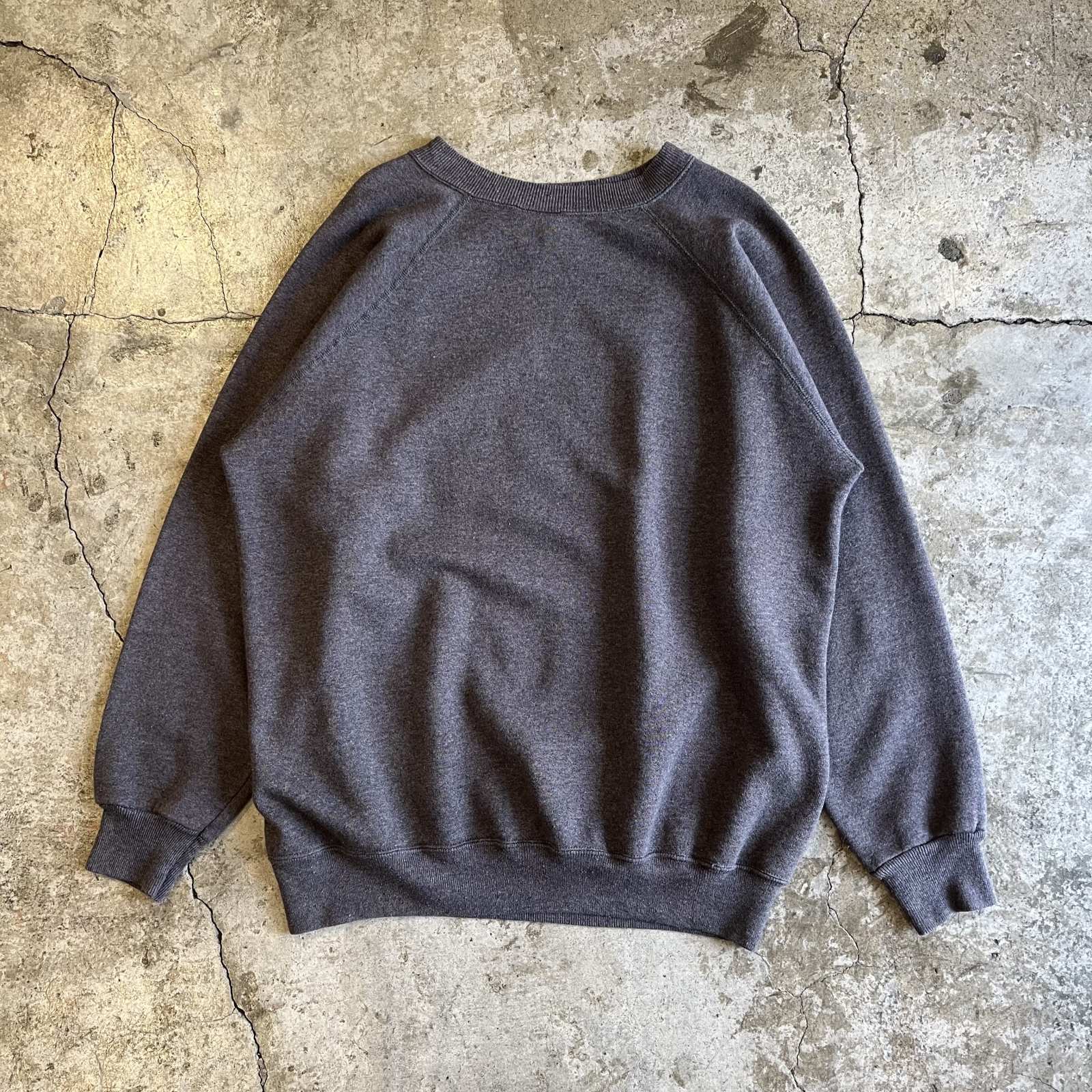 GREY COLOR RAGLAN SLEEVE DESIGN L/S SWEAT / Ladies L(XL) / MADE IN USA
