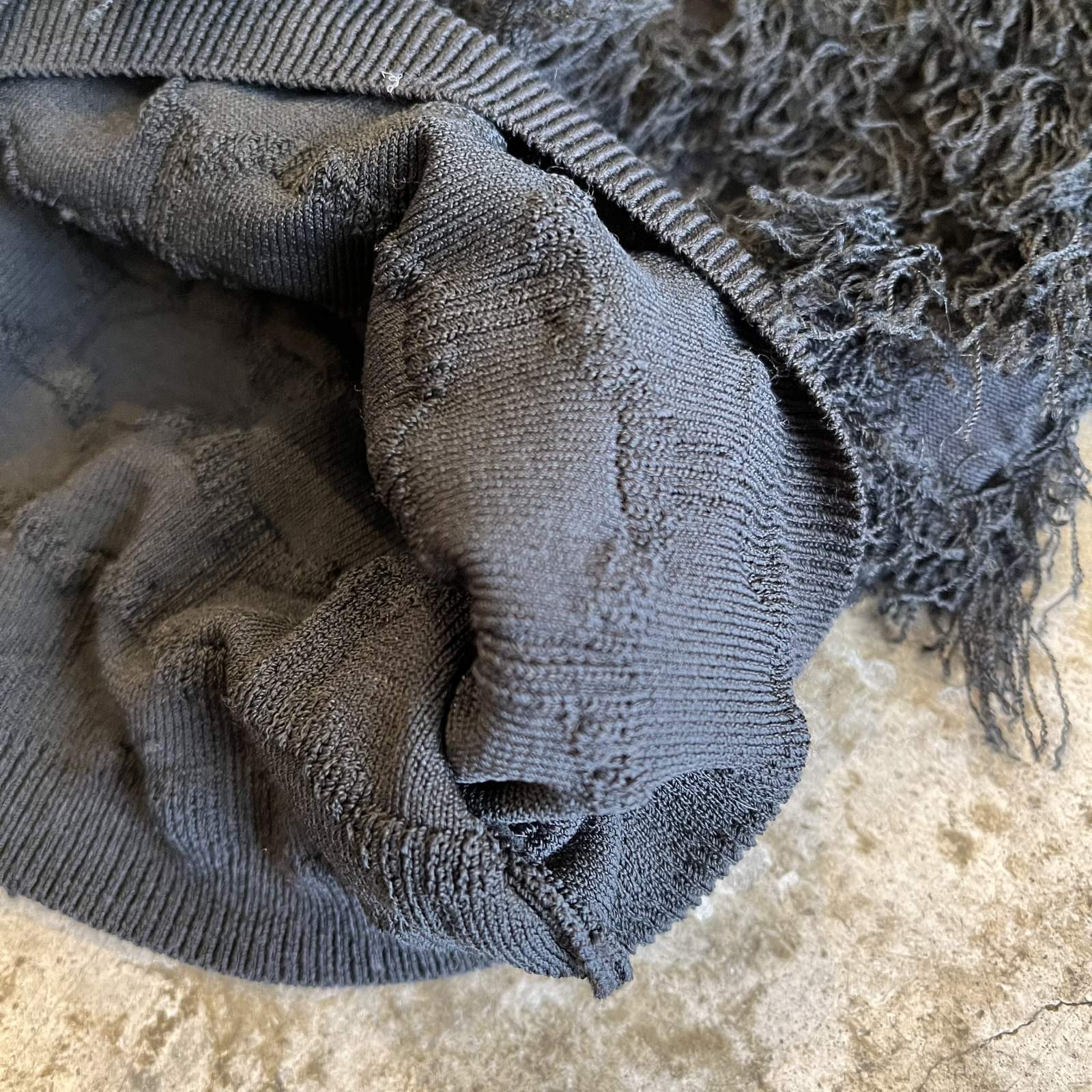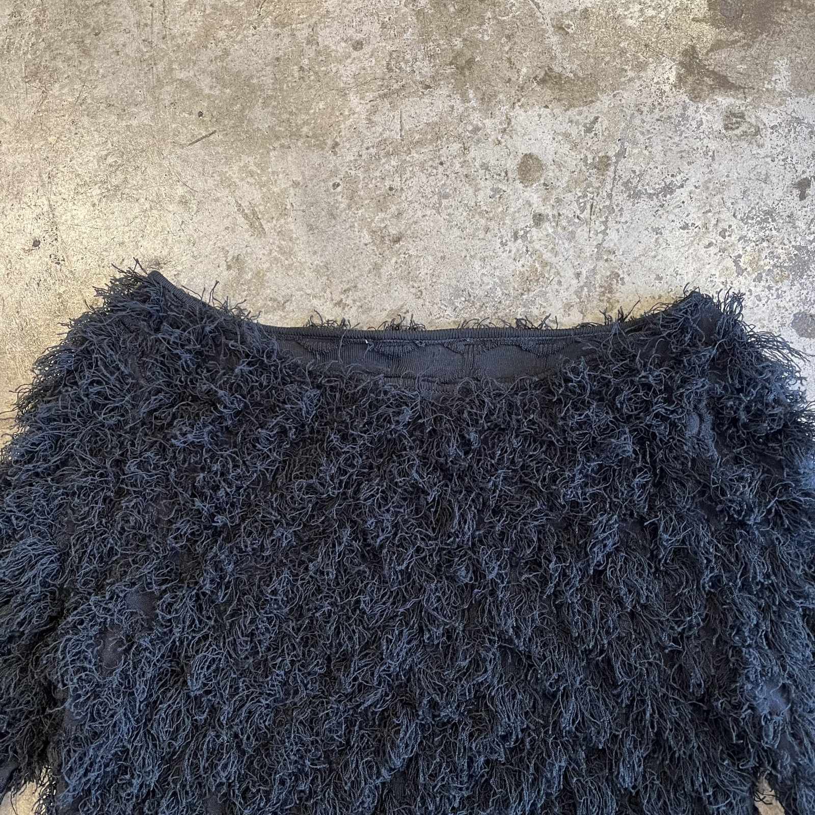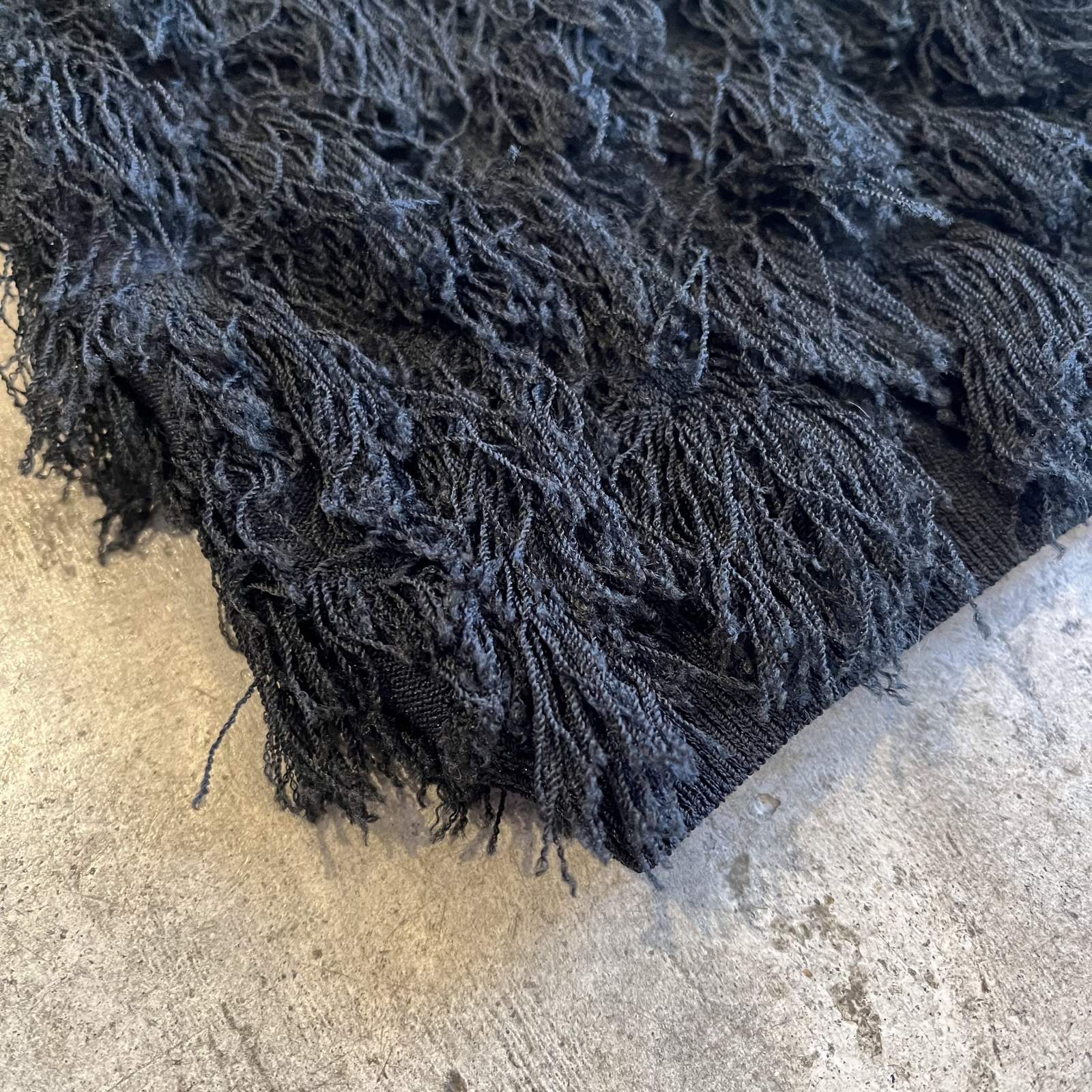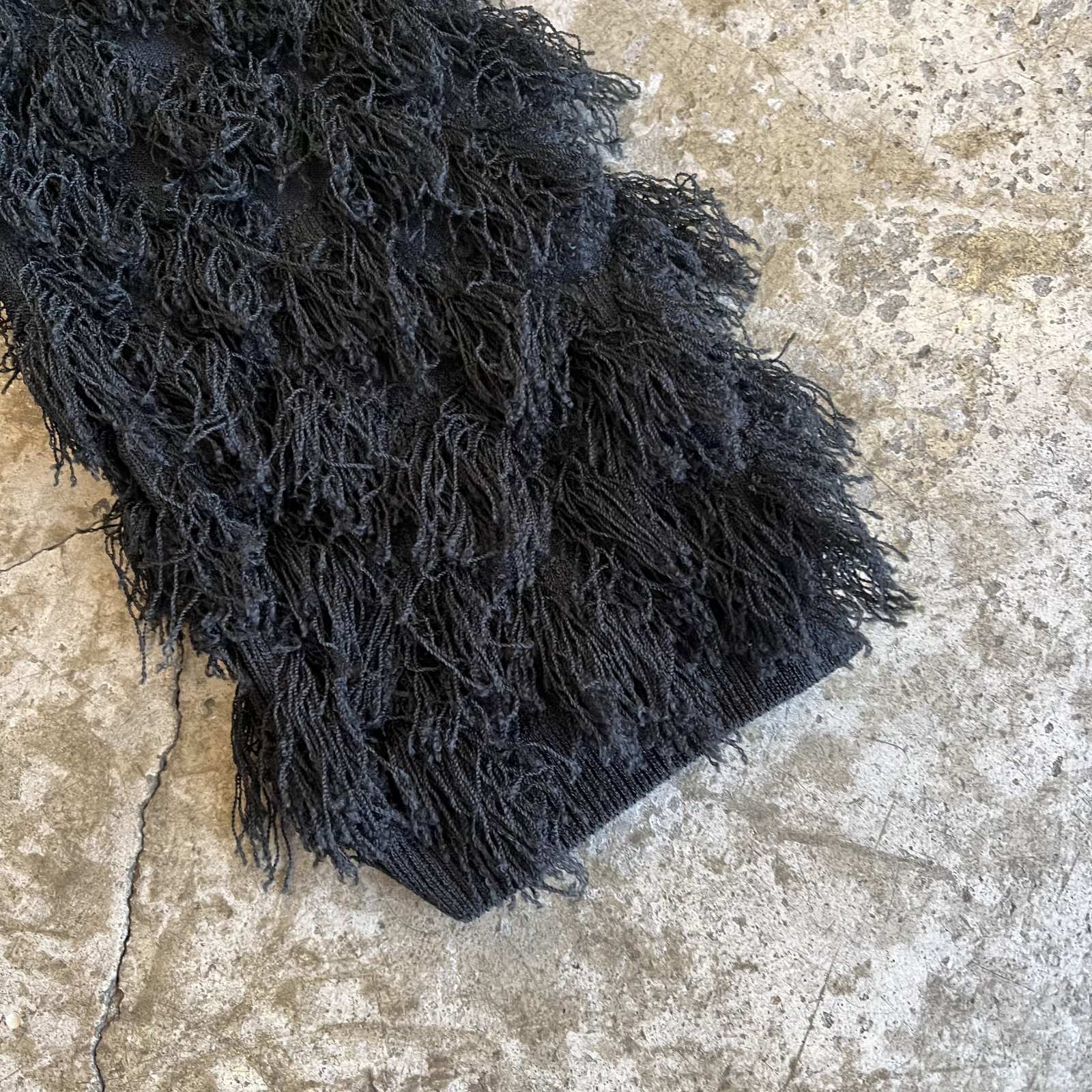 ブラックボディに細かいショートフリンジが散りばめられた1枚。