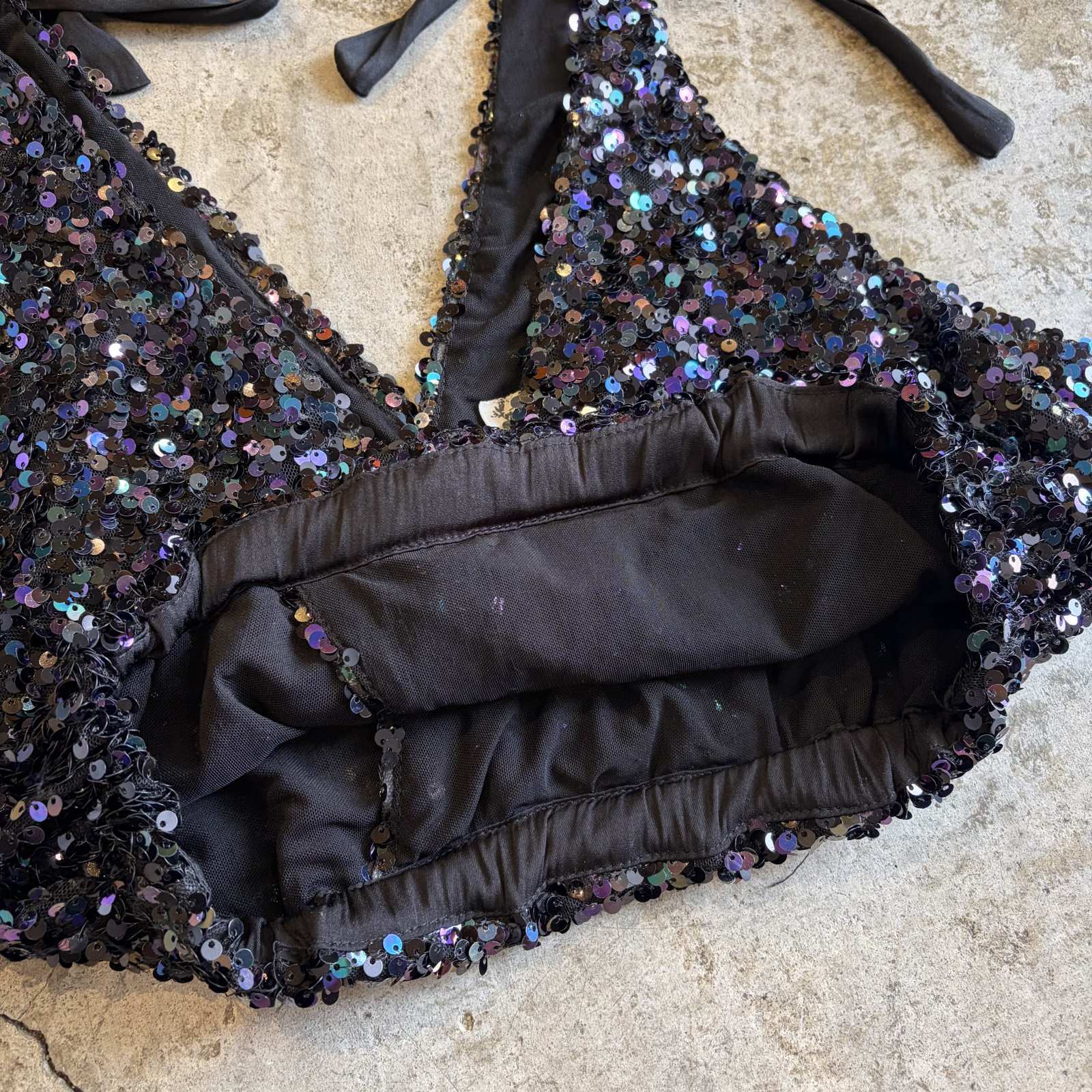 ブラックカラーのボディ全体にスパンコールが施され華やかさを与える。