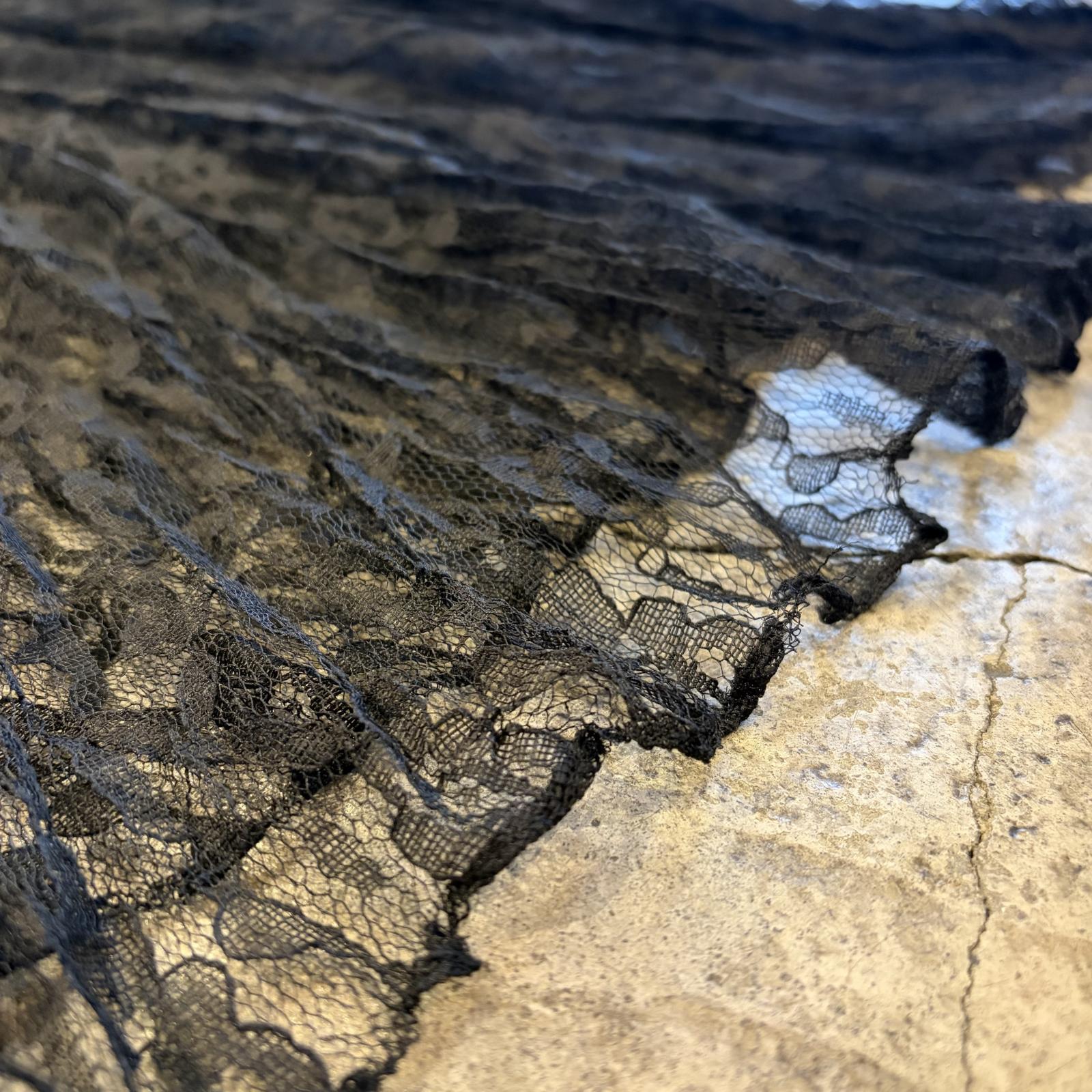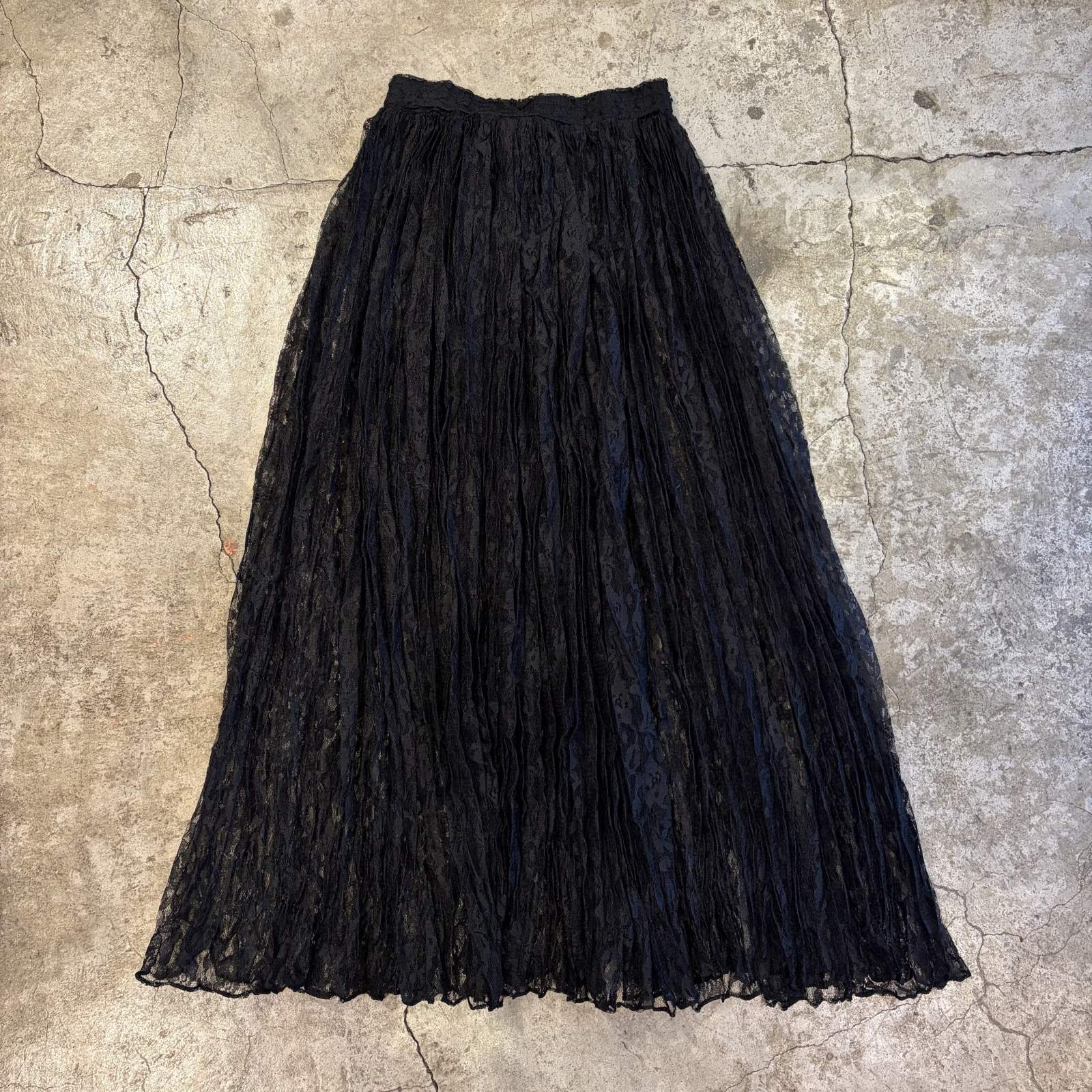 BLACK COLOR LACE DESIGN PLEATS LONG SKIRT / W23~W33 / MADE IN USA