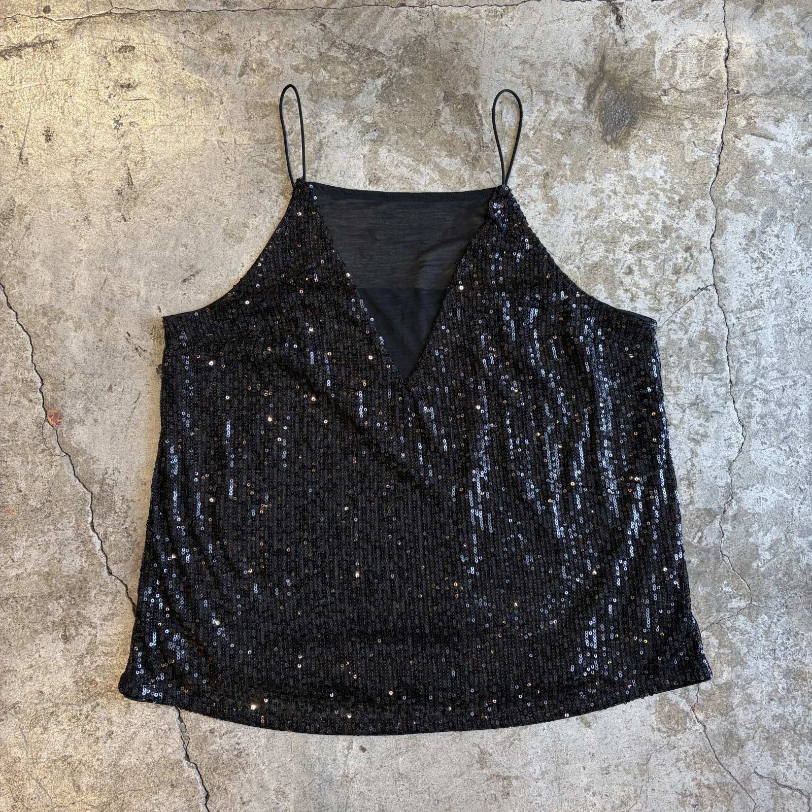 BLACK COLOR SPANGLE DESIGN POINT SHEER CAMISOLE / Ladies M