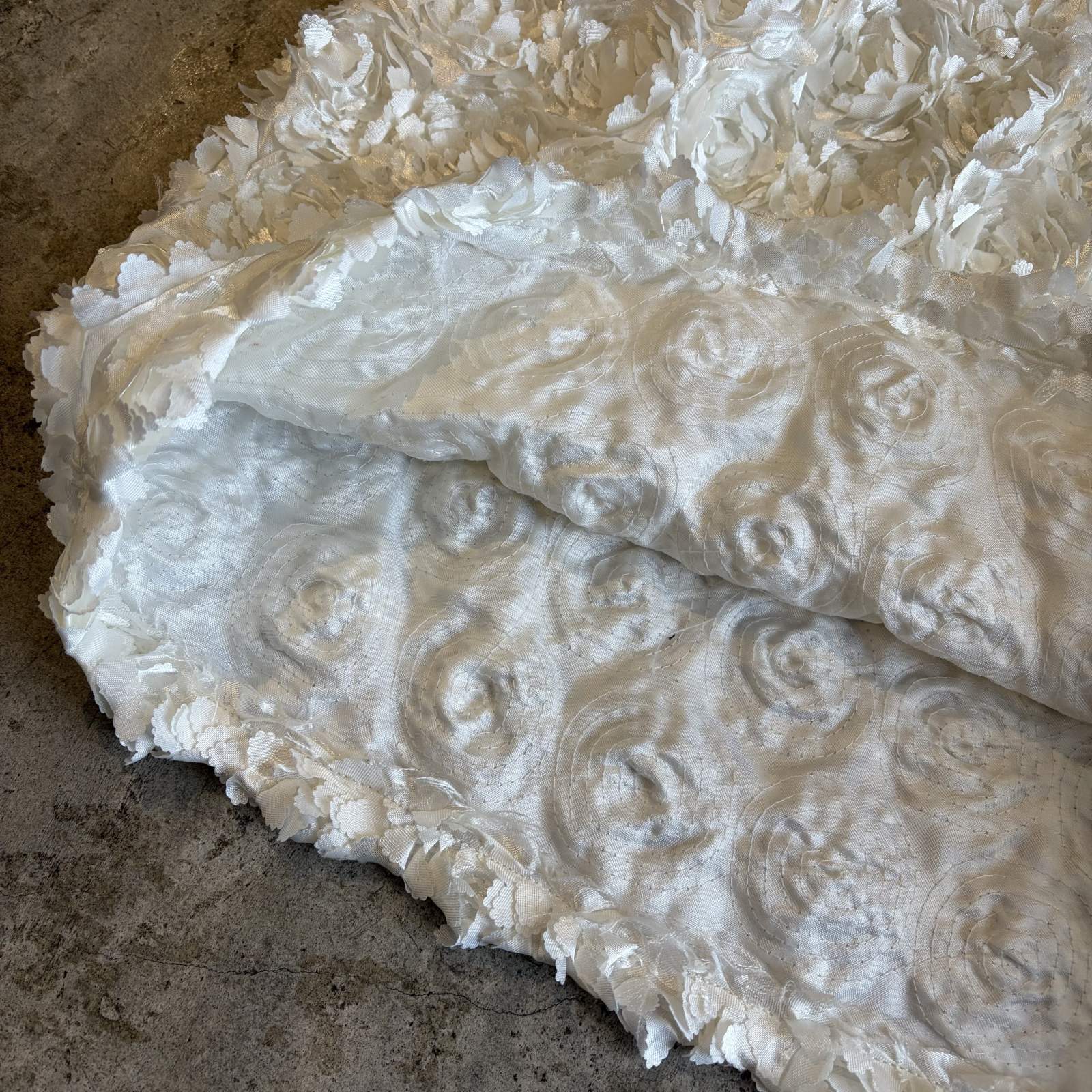 お花の立体感と、軽やかで動きのある素材が華やかさもプラス。