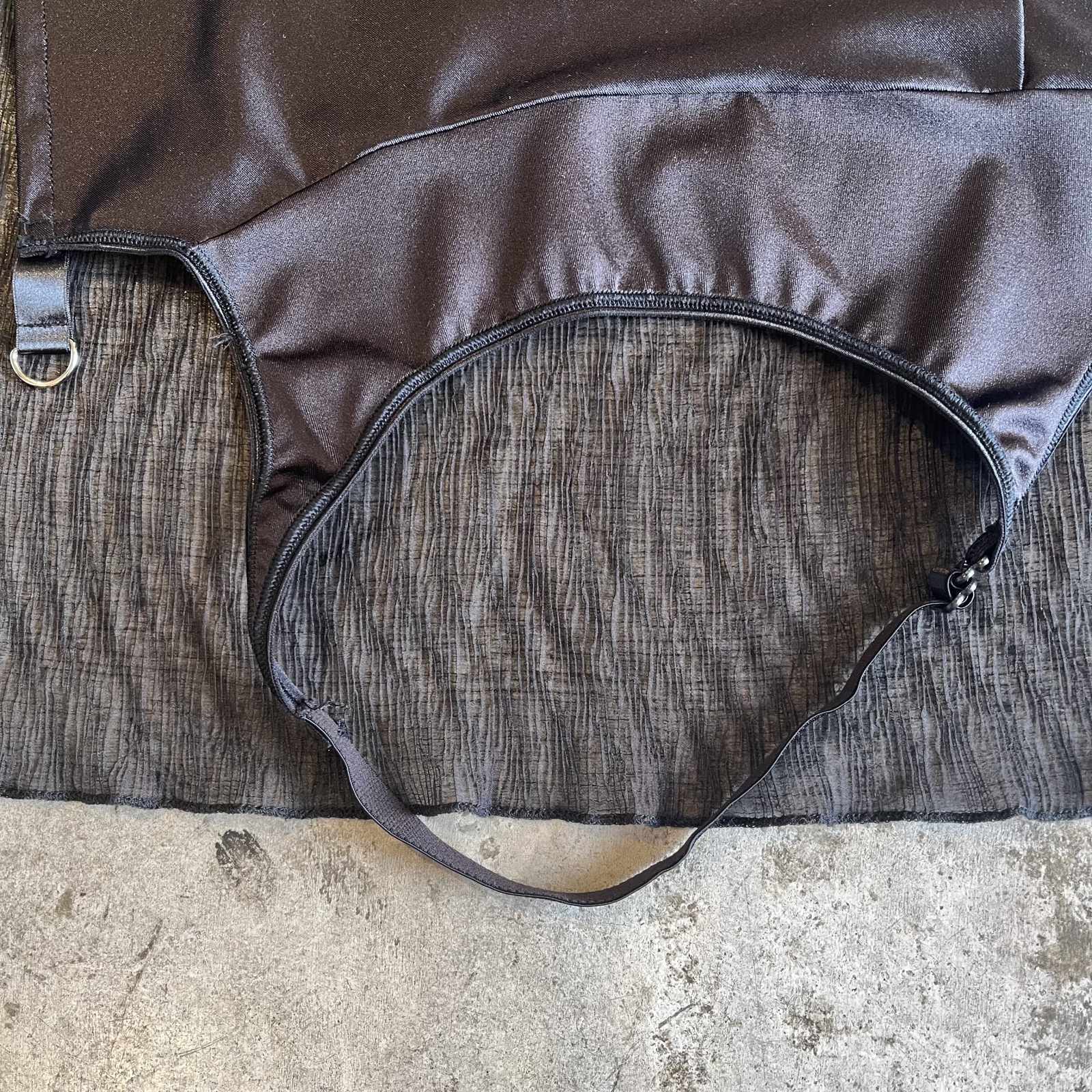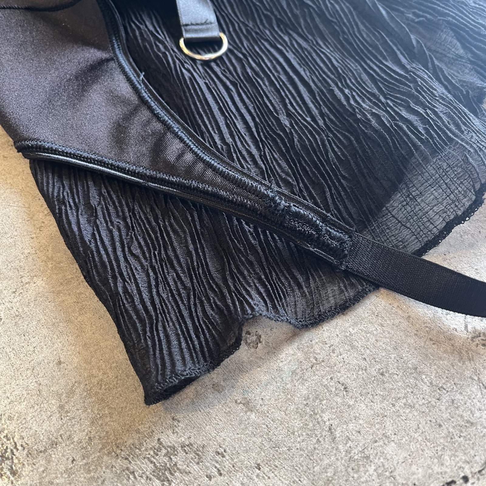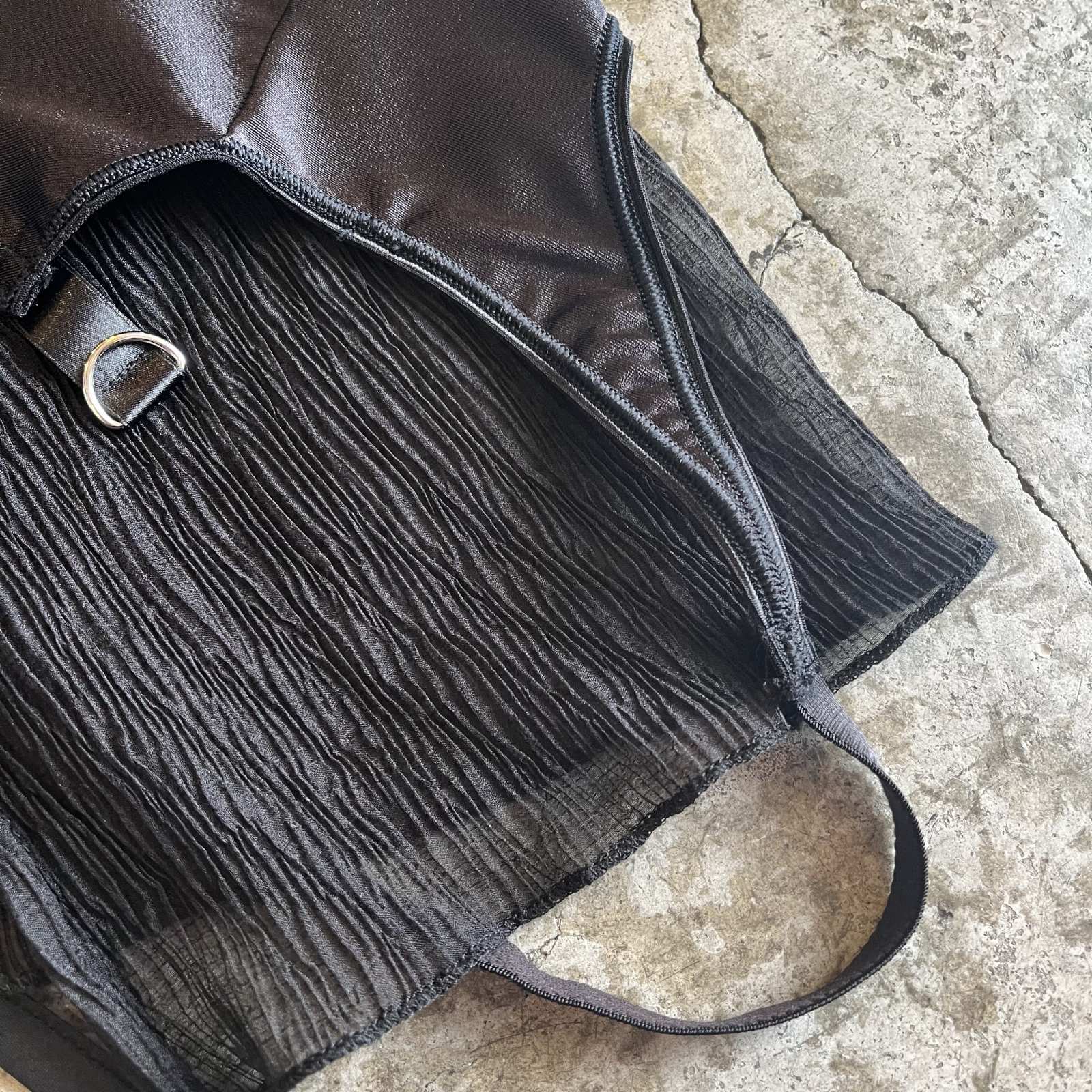 シックなブラックカラーで、2枚の異素材生地がラグジュアリー感の雰囲気を醸し出した1枚。