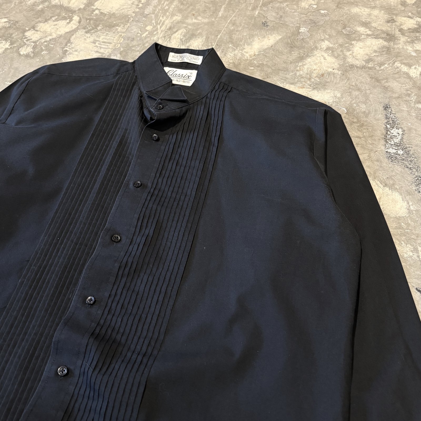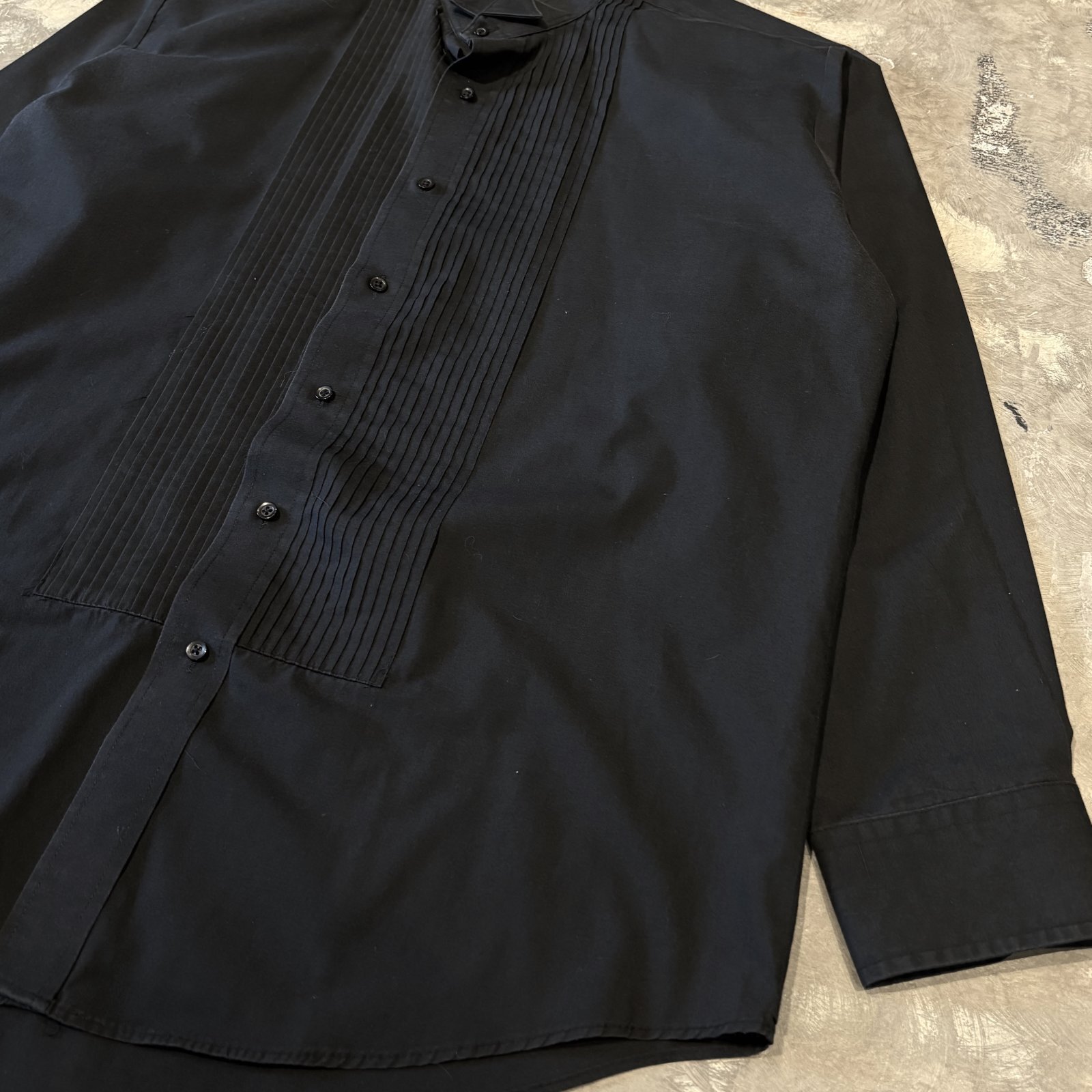 FRONT PLEATED BLACK COLOR DRESS L/S SHIRT / Mens L
