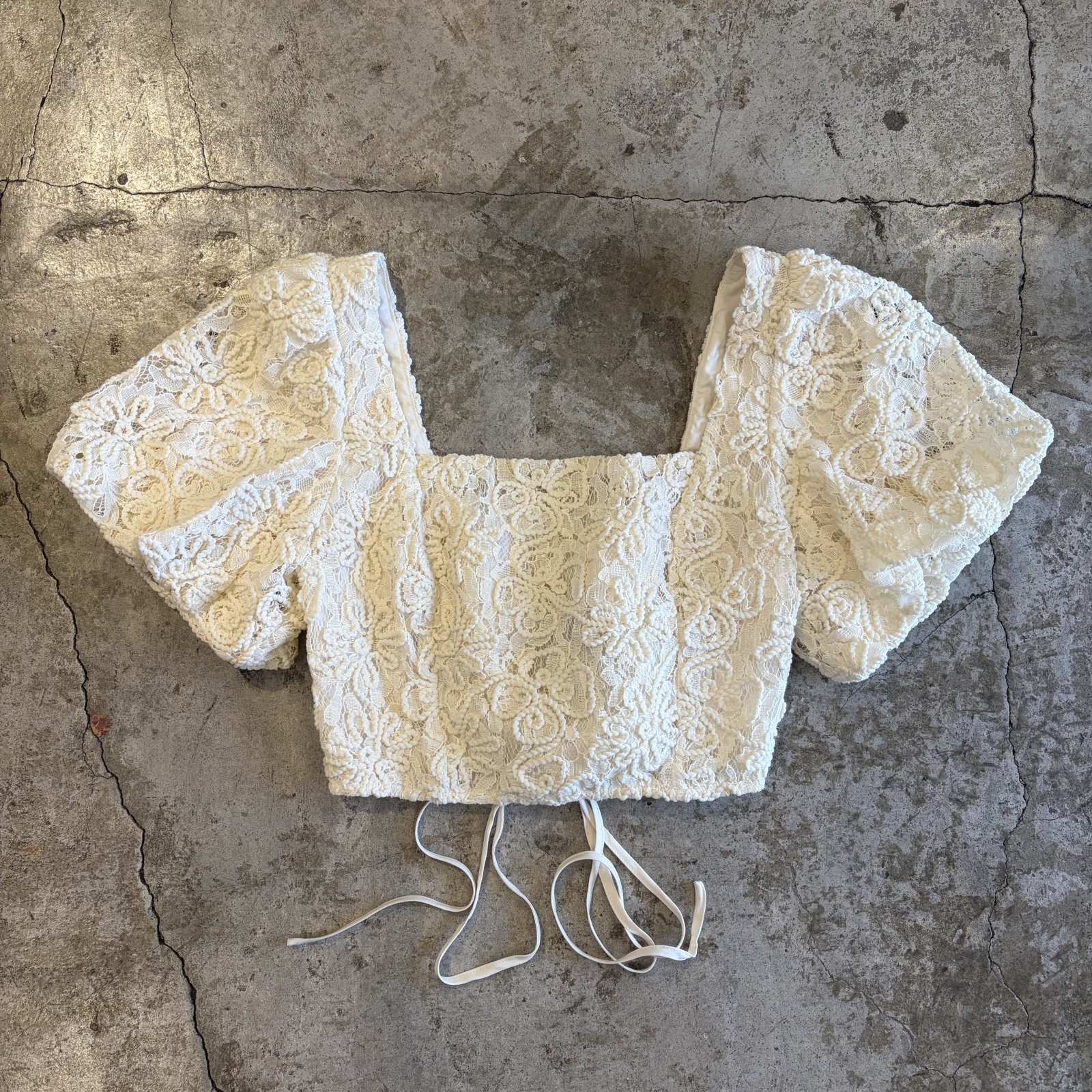 BACK LACE UP DESIGN PUFF SLLEVE SHORT TOPS / Ladies S(M)
