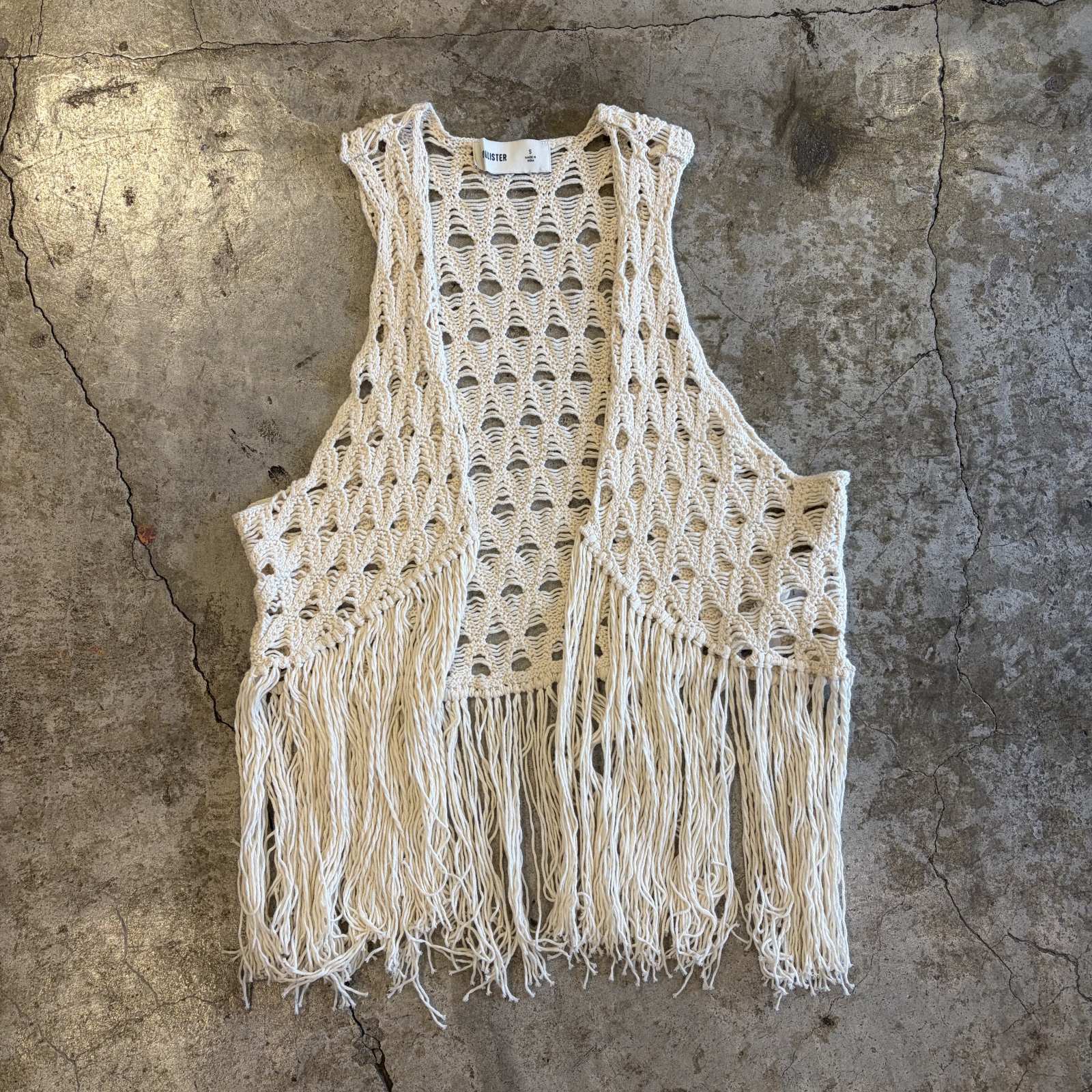 CROCHET DESIGN LONG FRINGE VEST / Ladies S(M)
