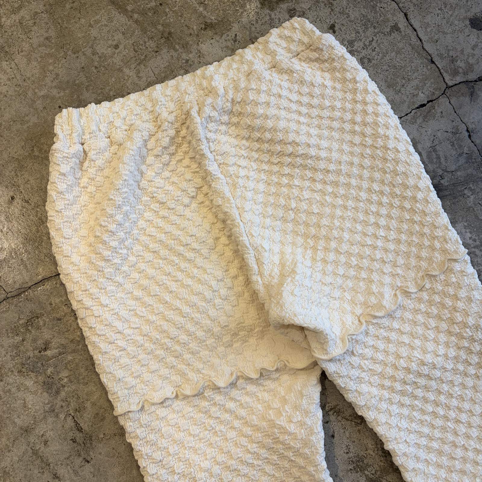 | SIZE | ONE SIZE(ウエスト:約66cm~約90cm*ゴム仕様/股上:約30cm/レングス:約68cm/裾幅:約22cm/わたり幅:約24cm) |