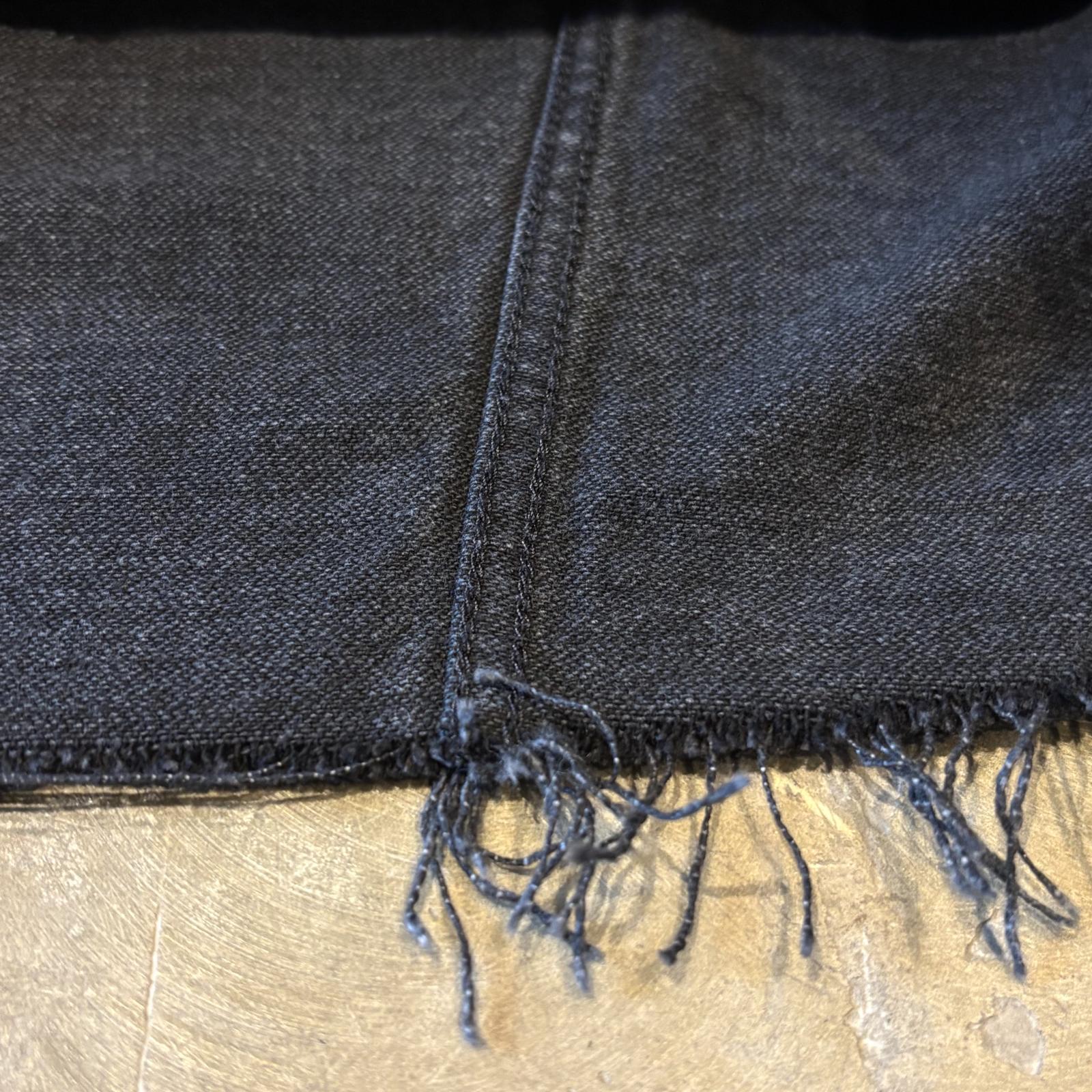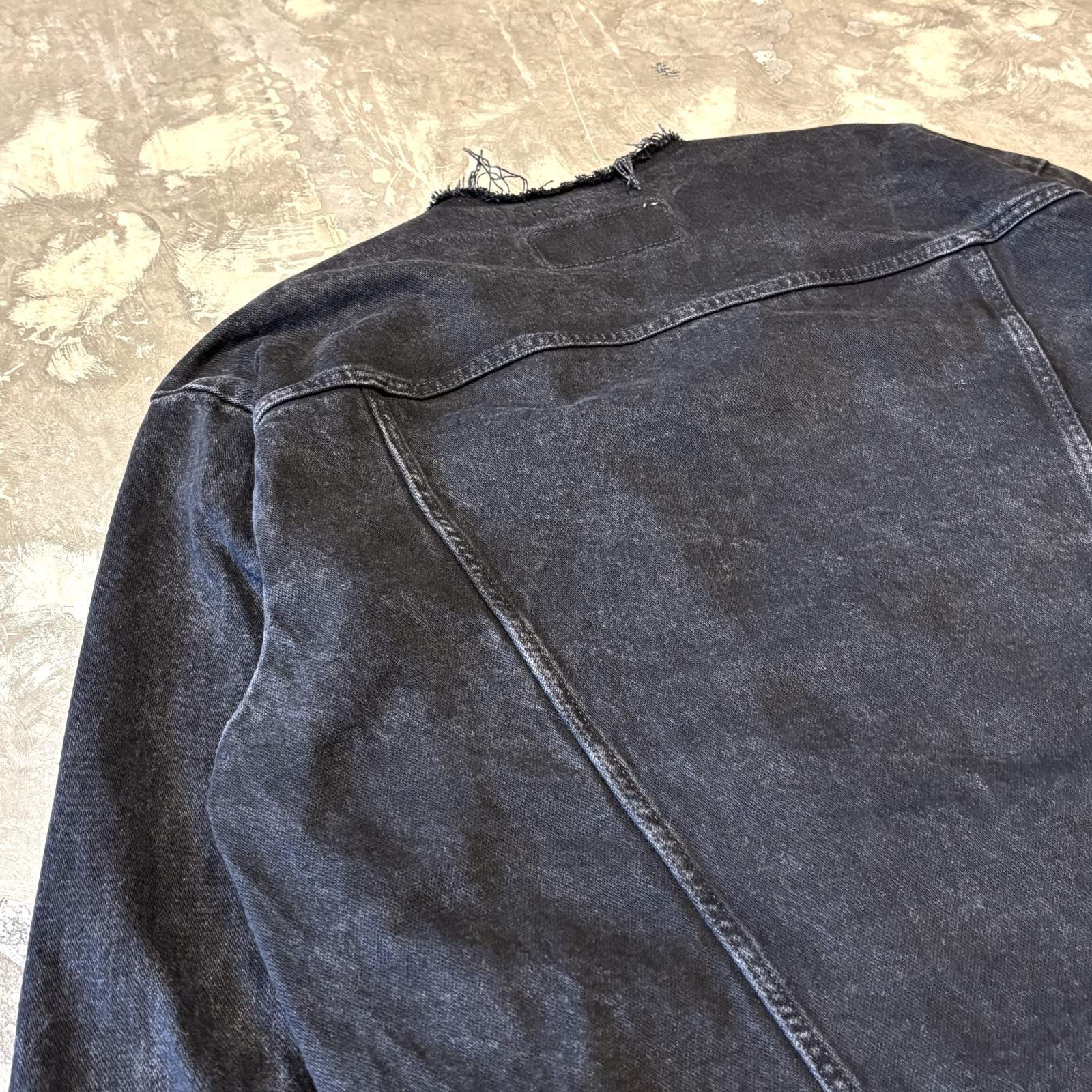 デザイナーのインスピレーションにより解体・再構築された"WANDERER" NO COLLAR ZIP UP DENIM JACKET。