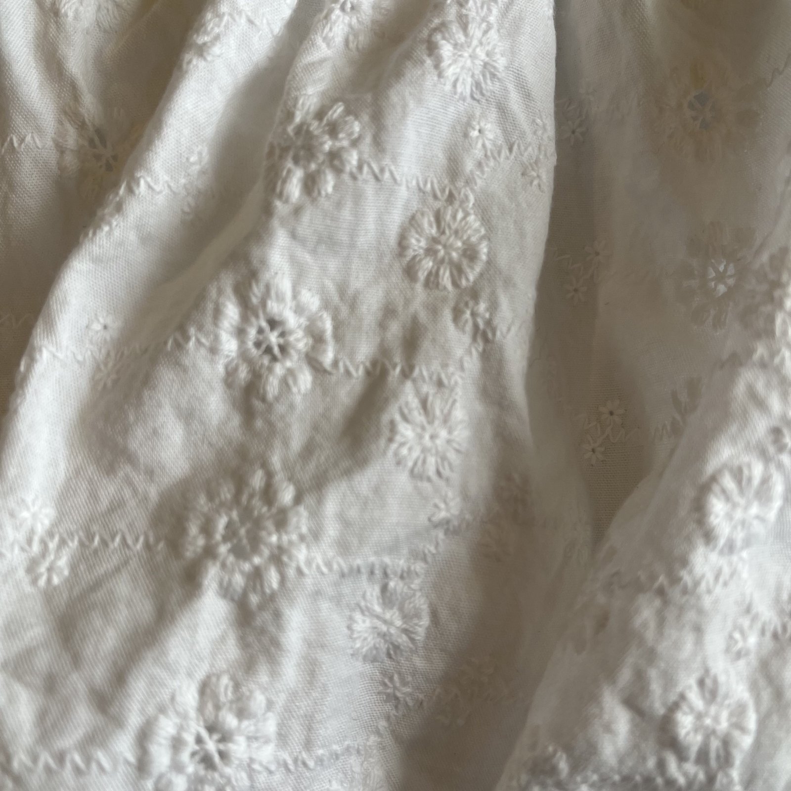 パンチングレースのコットン生地が重なり合ったティアードデザイン。