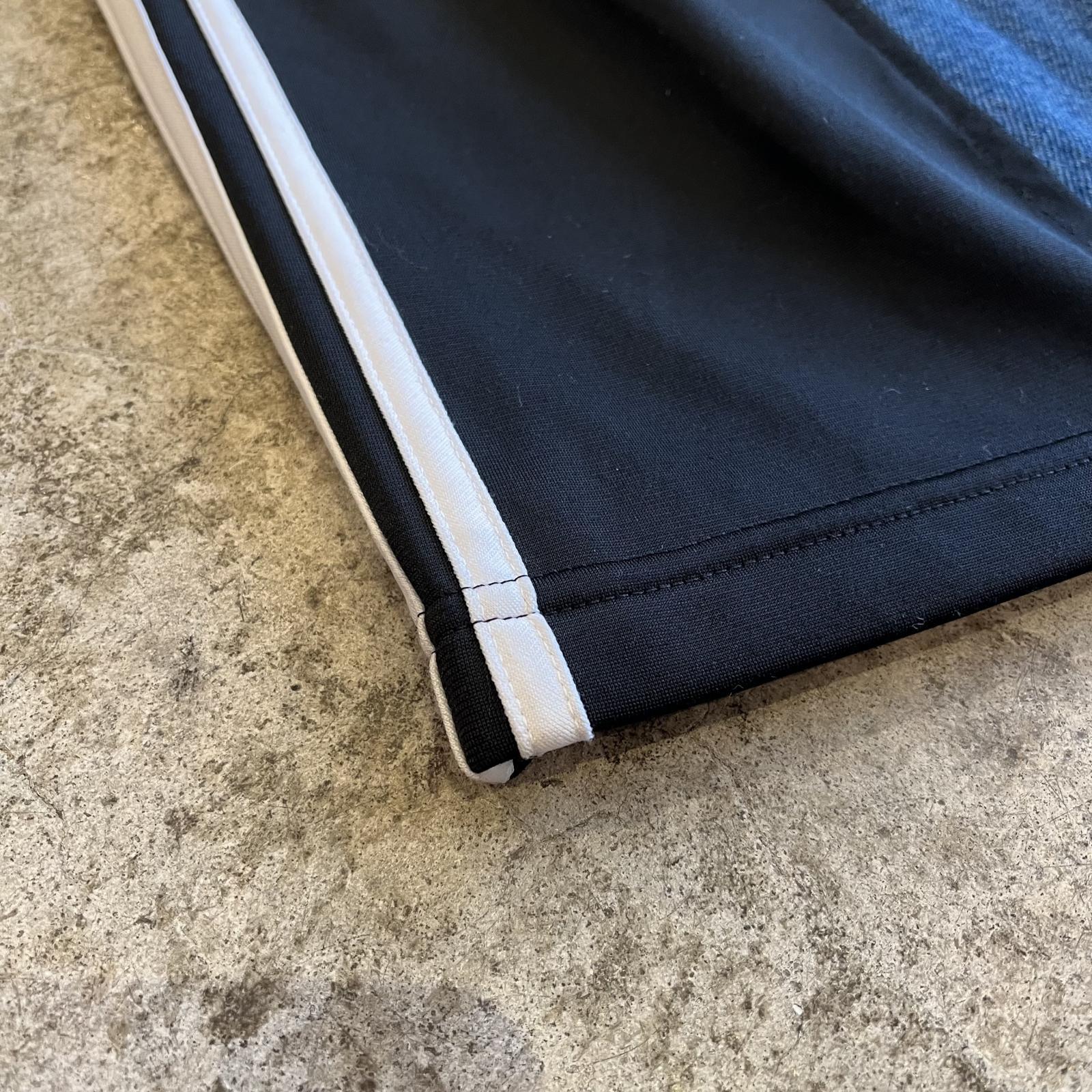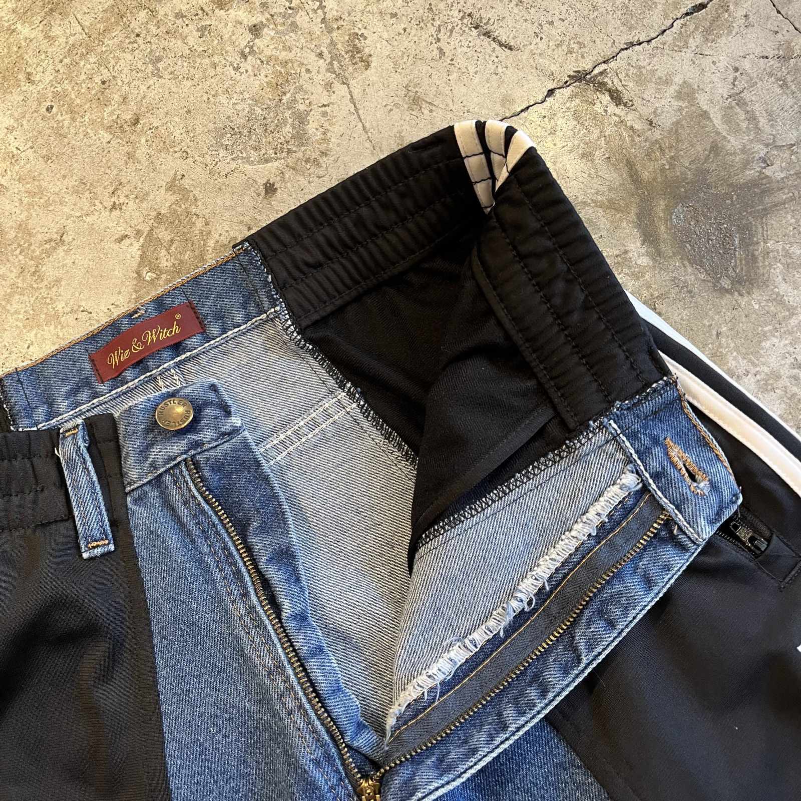 "adidas"のトラックパンツとデニムパンツをドッキングした1本。
