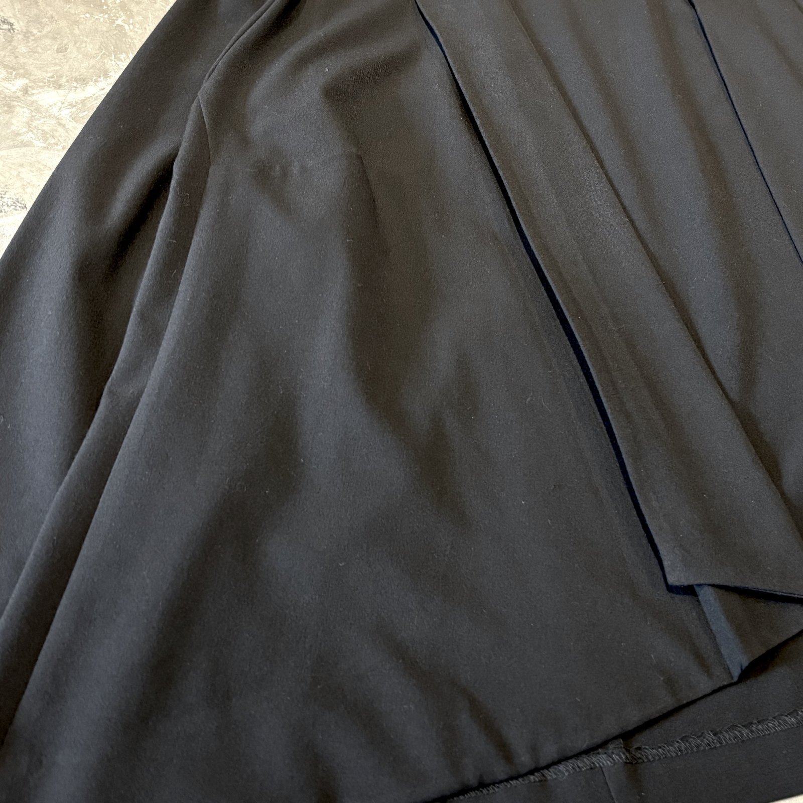 程よく短い着丈と裾に向かって広がるつくりがドレープ感を生み、余裕のある印象を与えます。