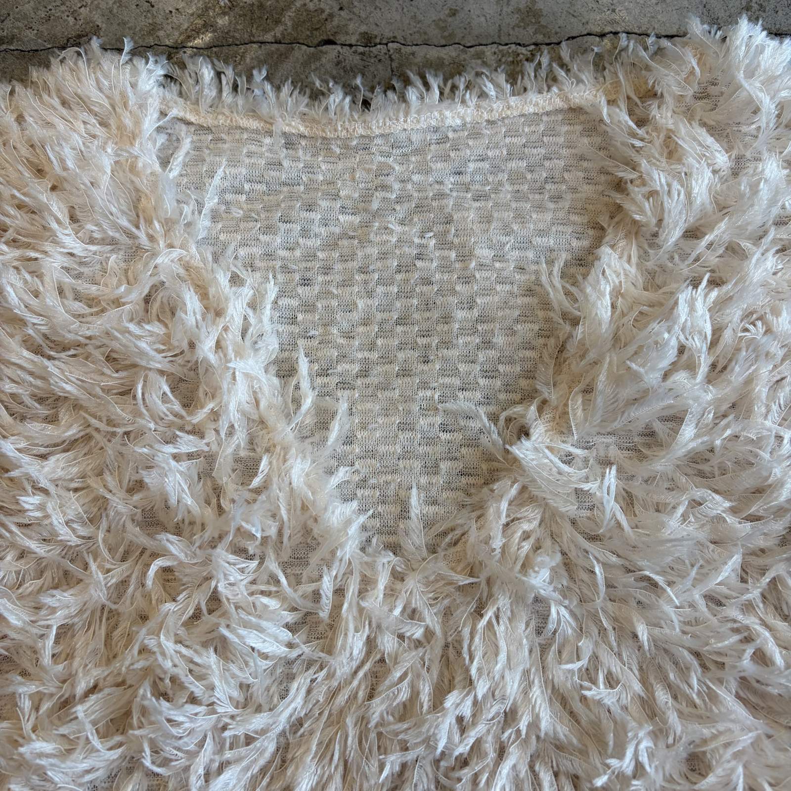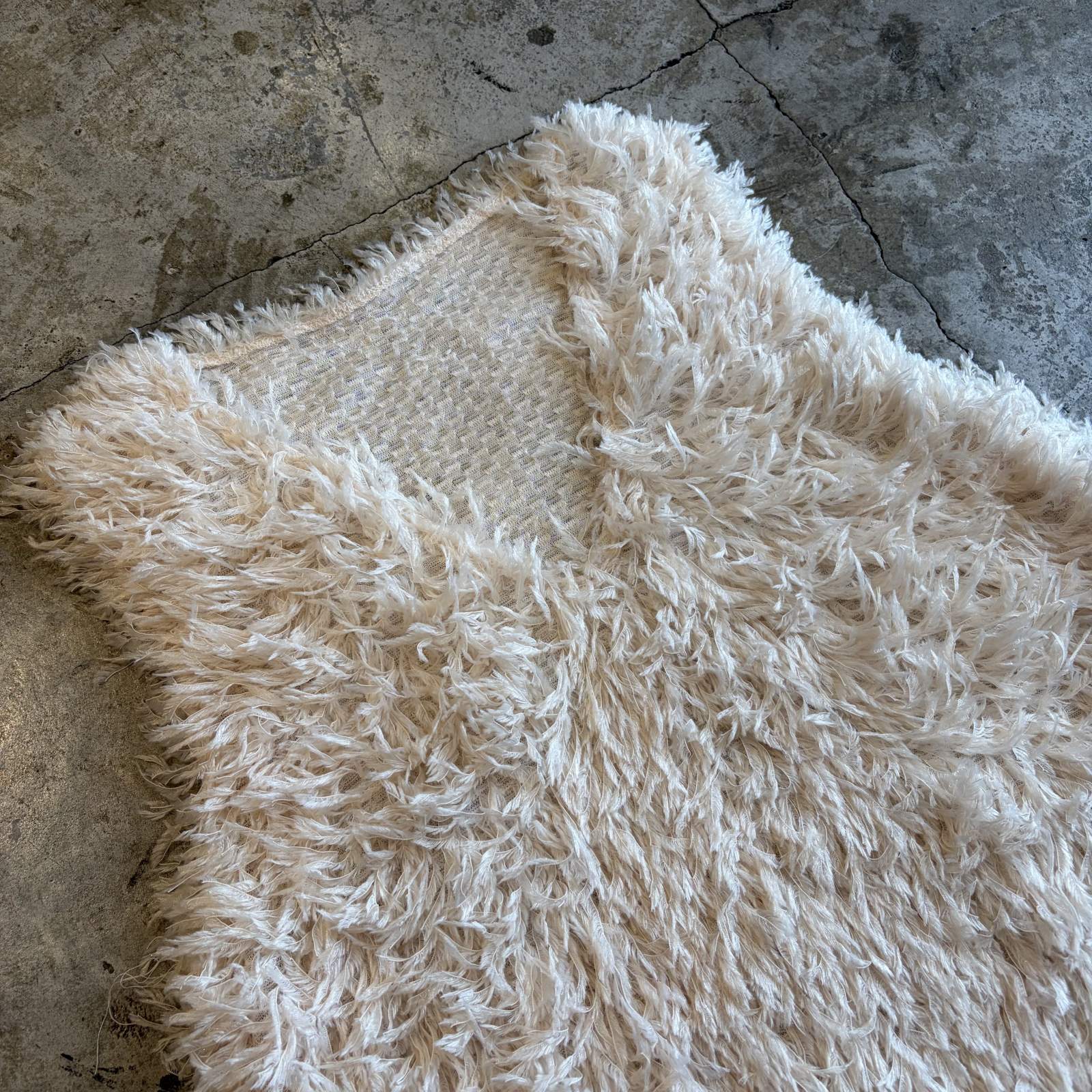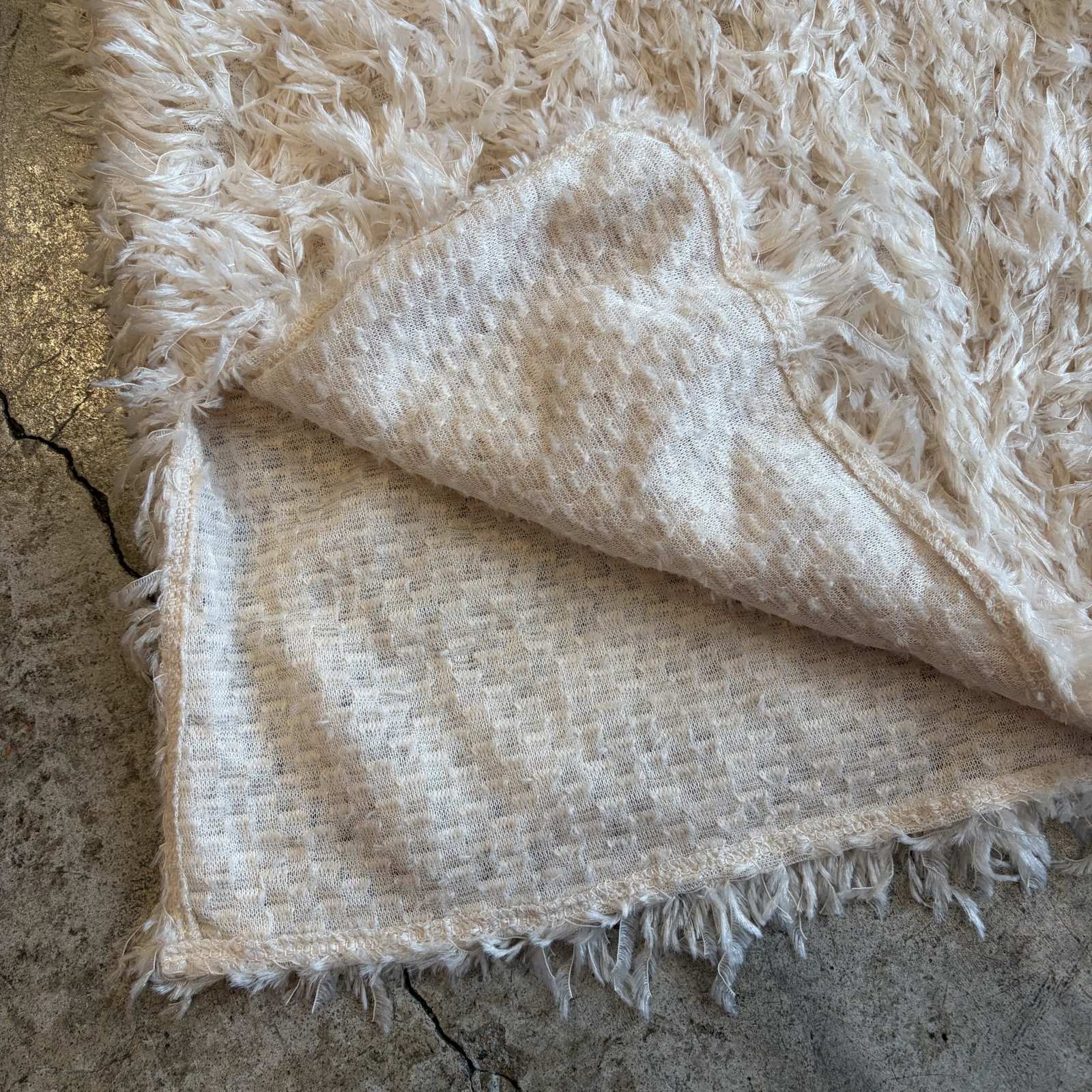 柔らかいシャギー素材が全体に施された1枚。