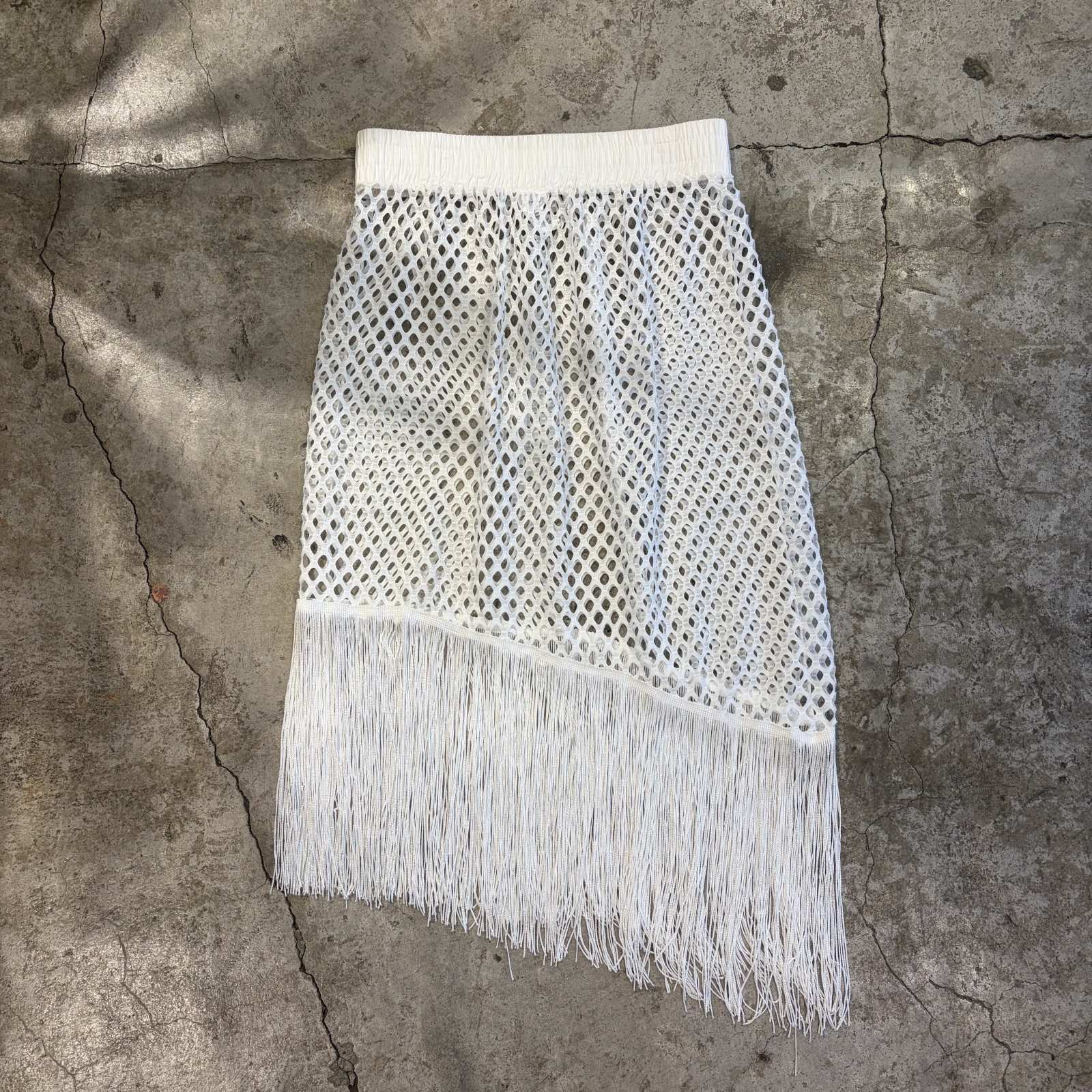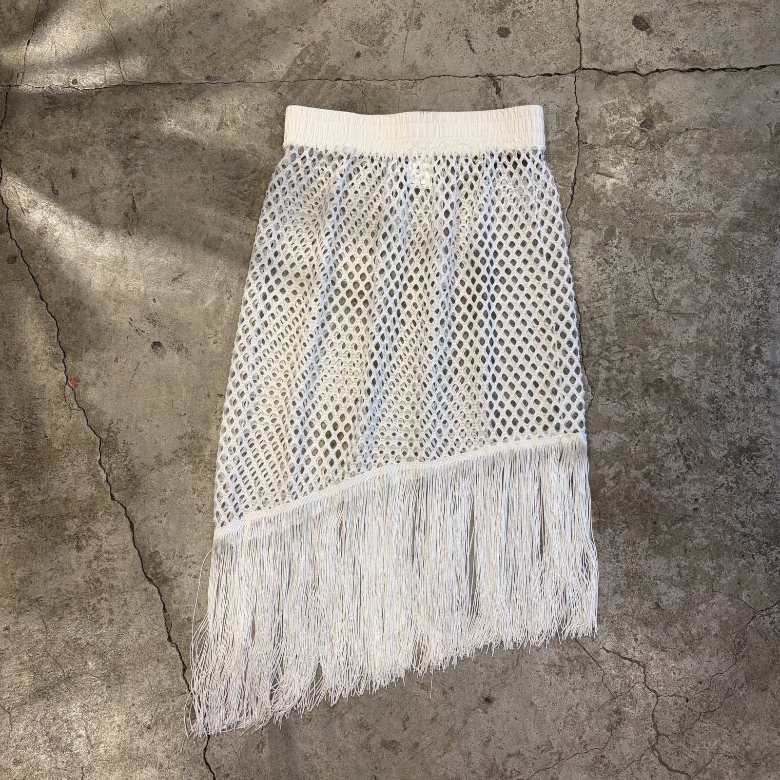 WHITE COLOR MESH DESIGN ASYMMETRY FRINGE SKIRT / W24~W31