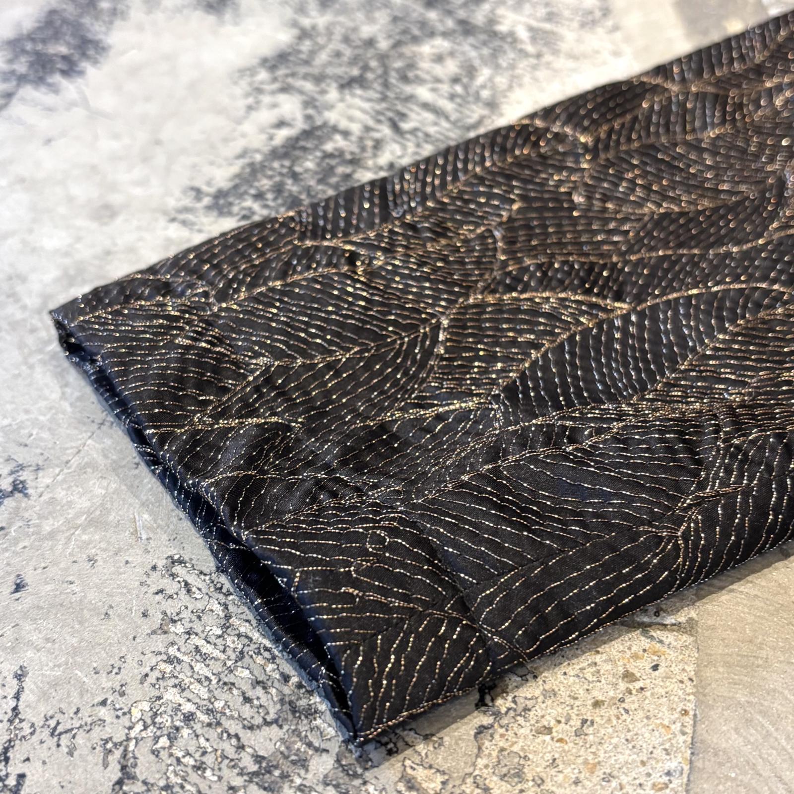 総柄ではあるものの刺繍らしい模様やラメの光沢が上品さを演出する1枚。