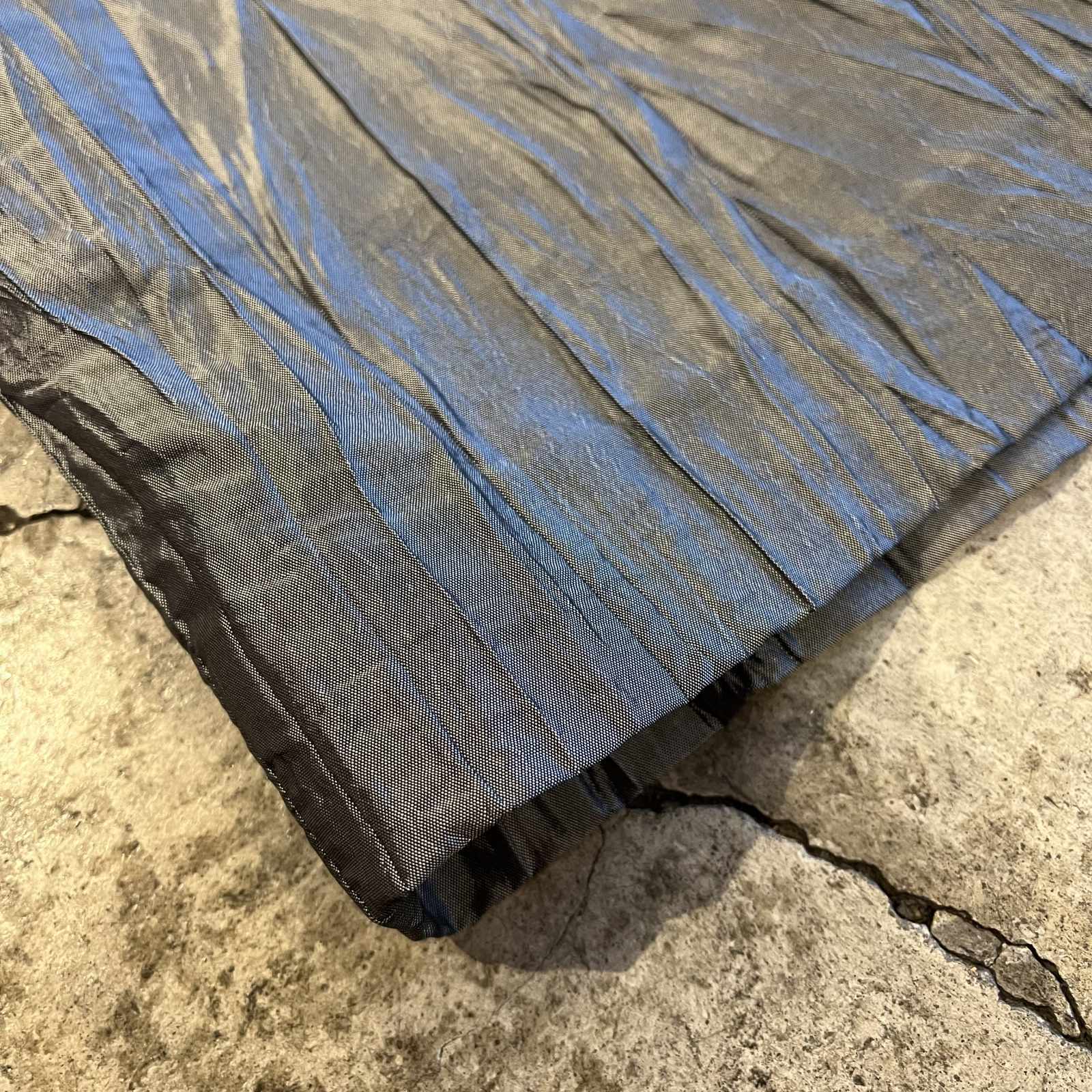 カラーリングとフワッと軽やかなポリナイロンのような生地のバランスがよくモード感を演出。