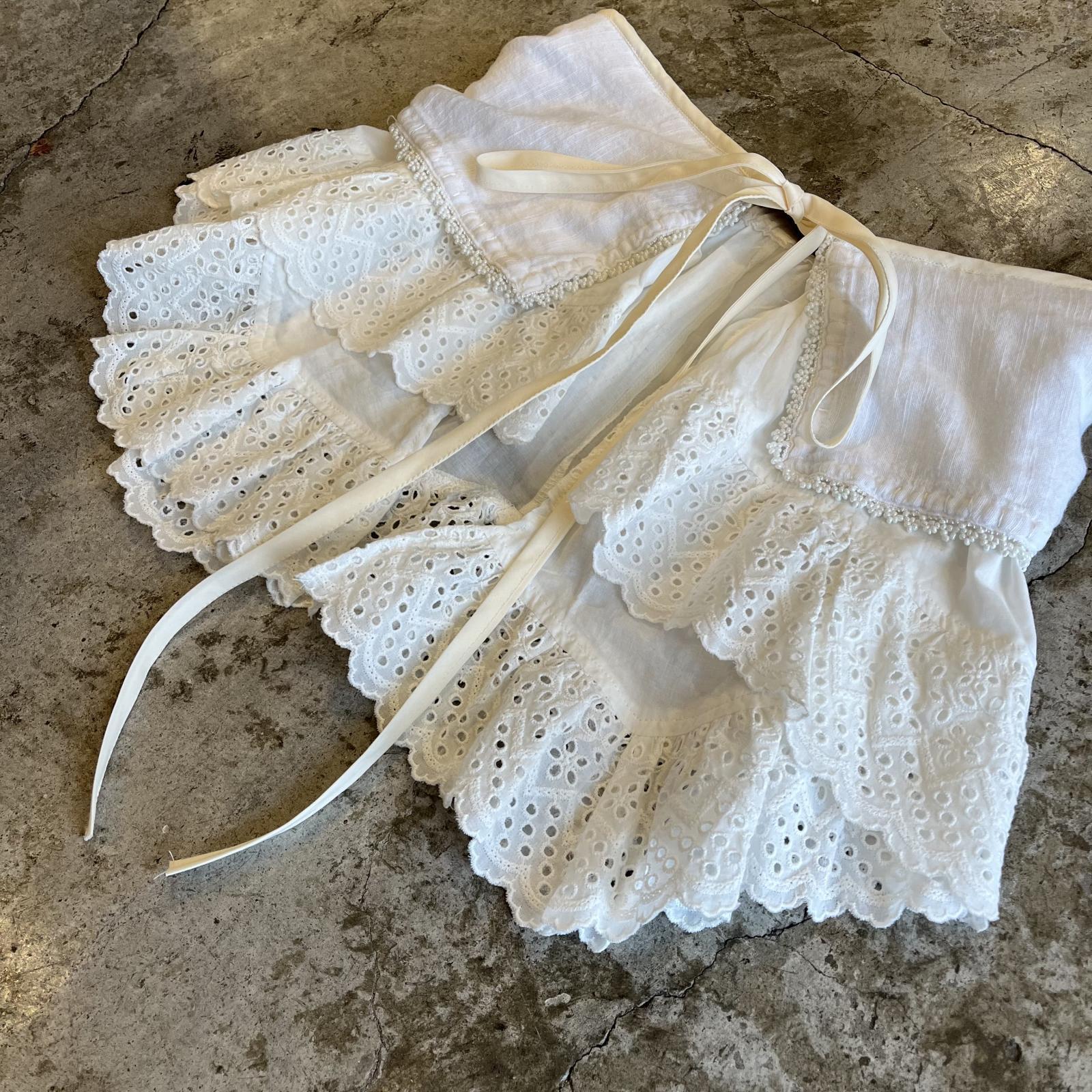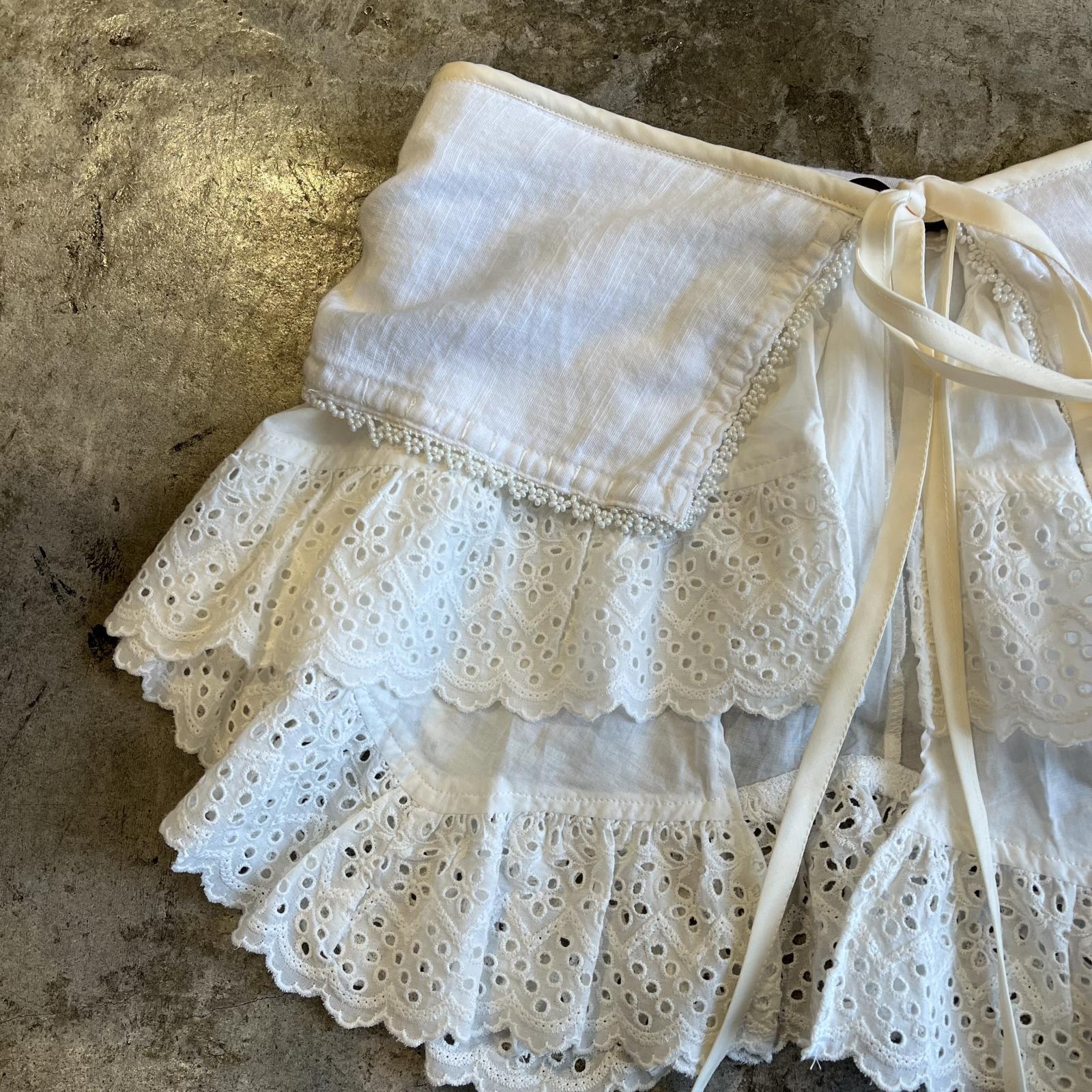 パンチングレースとデコレーションガーゼの生地が重なり合ったティアードデザイン。