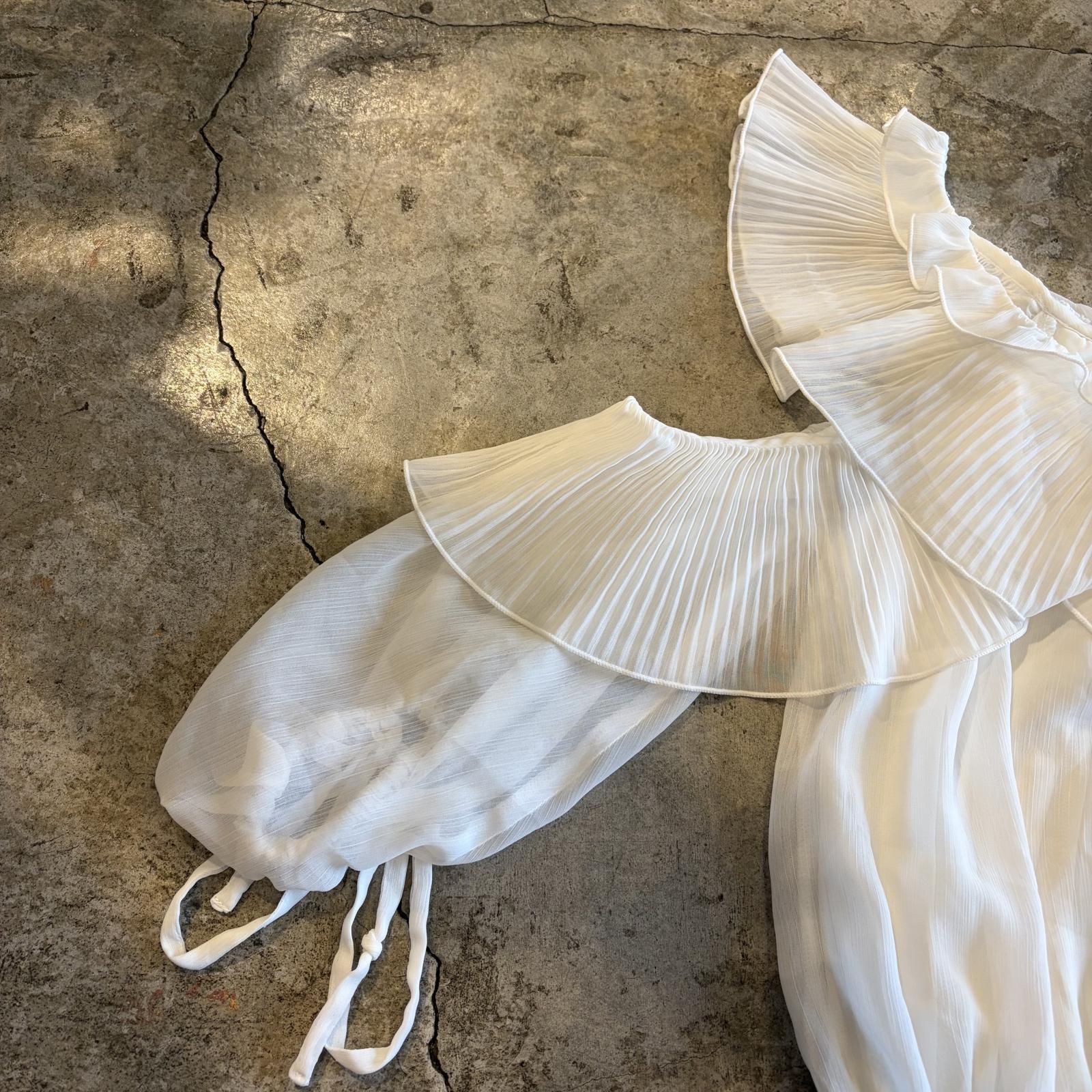 2WAY DESIGN WHITE COLOR SHEER TOPS / Ladies M